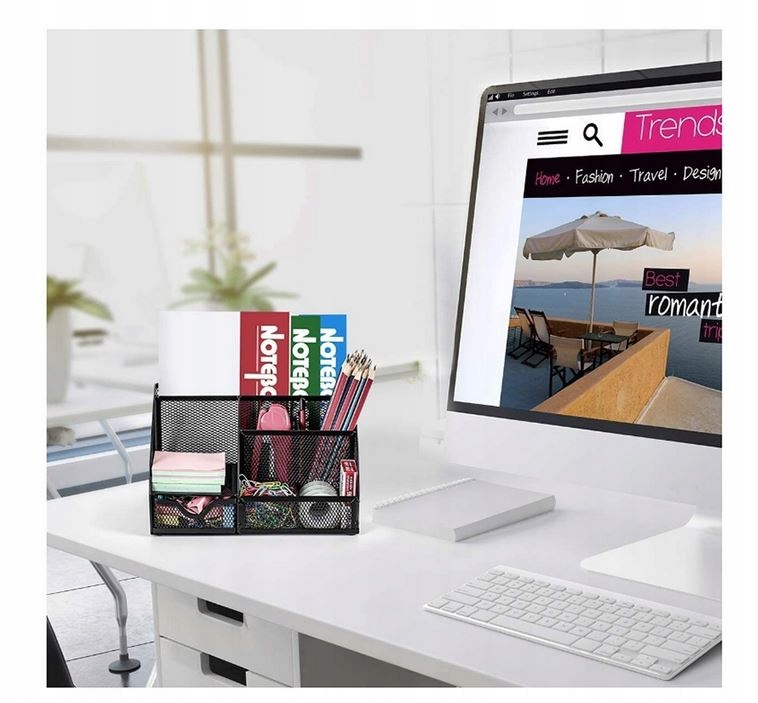 Настольный органайзер с легкой сетчатой металлической конструкцией, подходит для использования в дома, в офисе и т. д. В нем можно хранить необходимые школьные и офисные принадлежности: скрепки, клей, ножницы, ручки, мелки, маркеры, ластики, стикеры