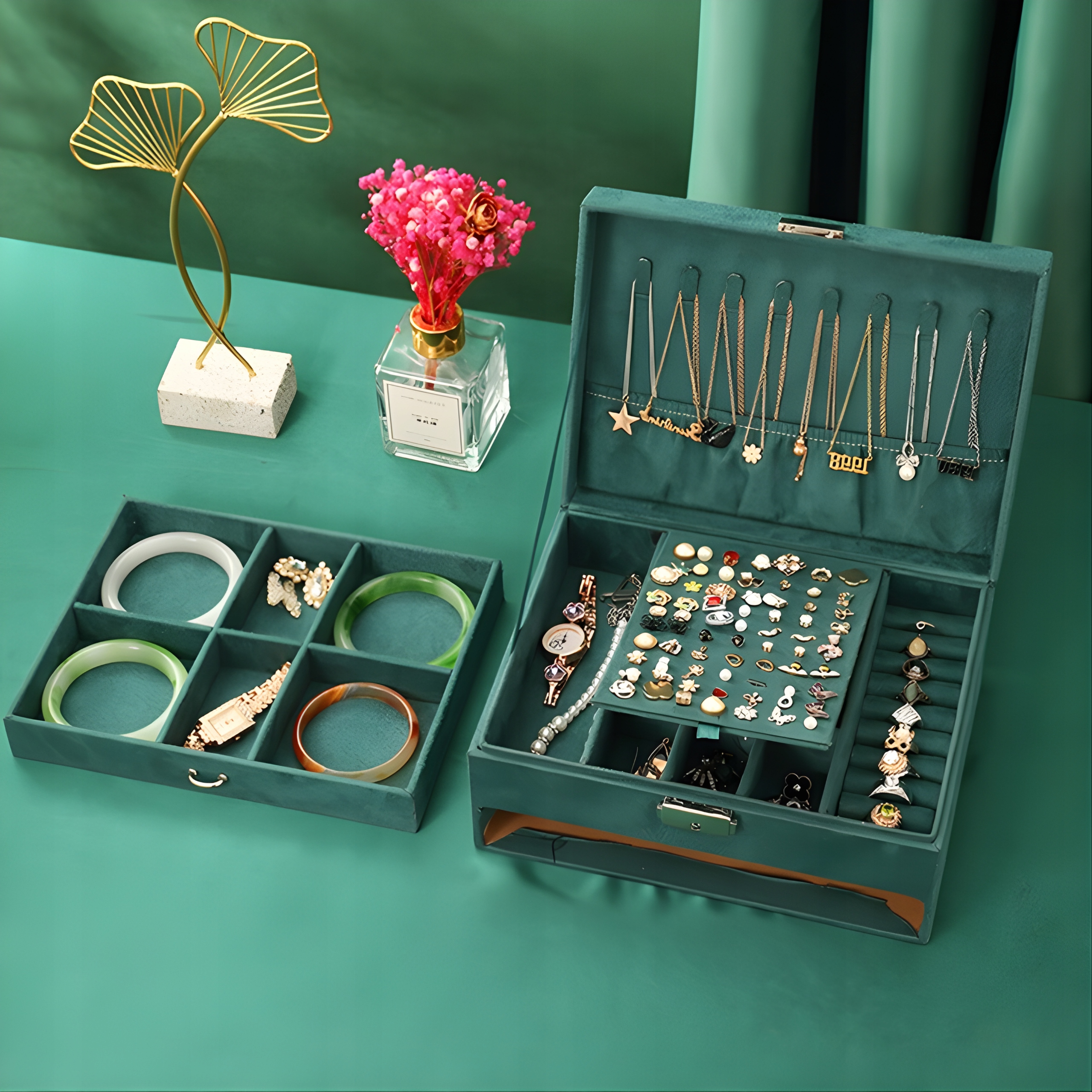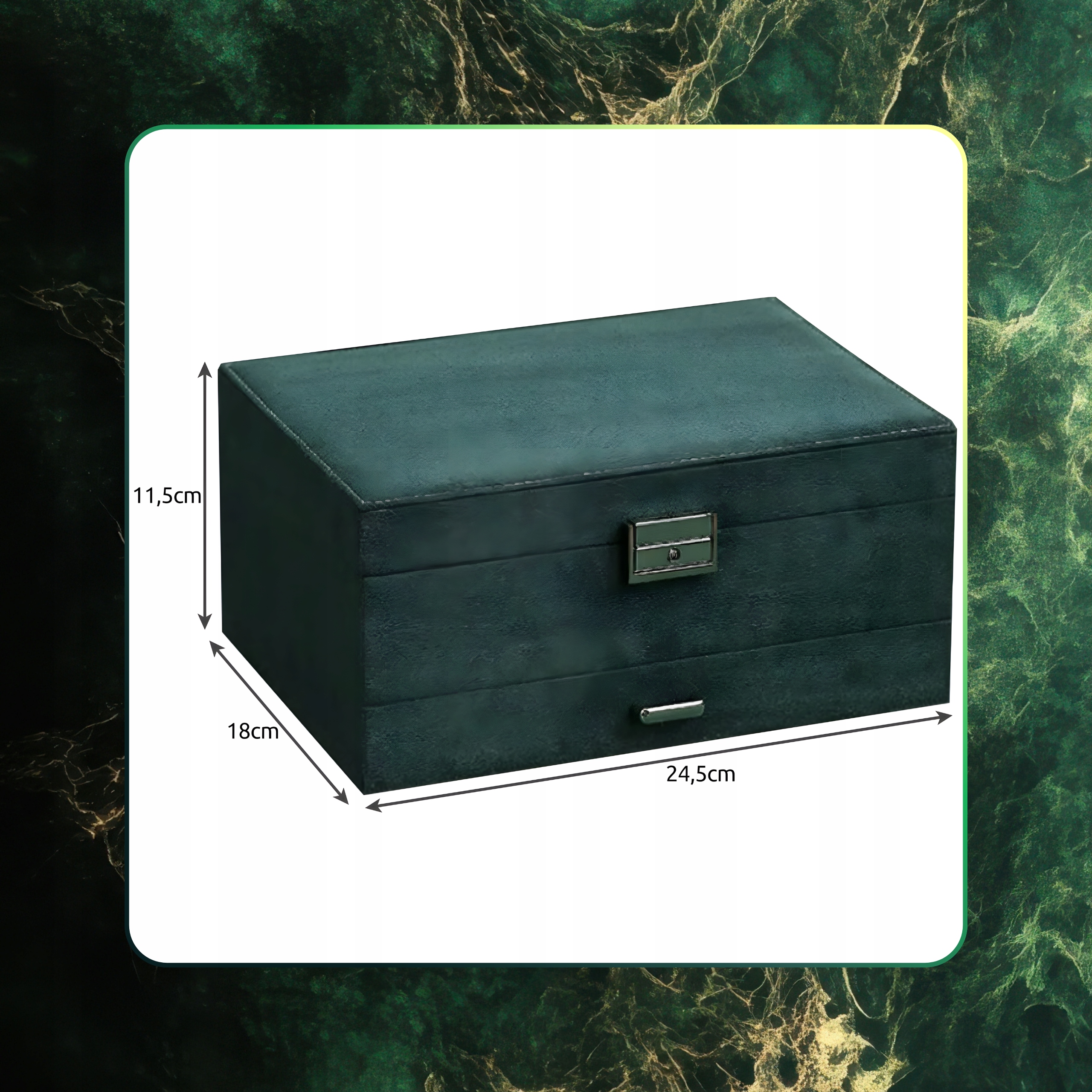 ✔️ Вневременной дизайн в оттенках бутылочно-зеленого цвета, серебряные отделочные элементы и застежка для ключей - откройте для себя шкатулку, которая защищает и демонстрирует ваши самые ценные безделушки.