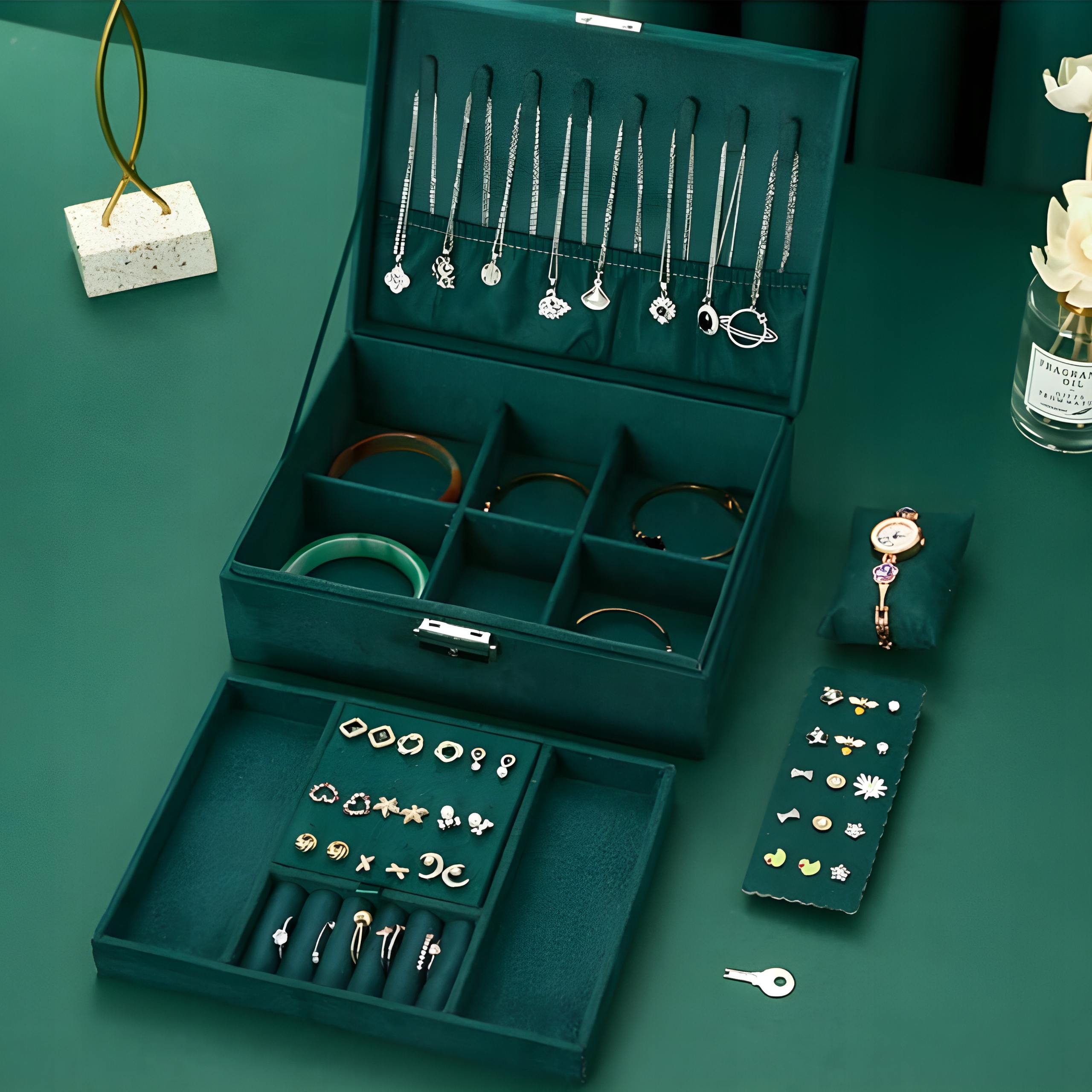 ✔️ Это не просто органайзер – это способ обеспечить порядок, элегантность и безопасность в одном. Идеальный подарок для каждого любителя ювелирных украшений.