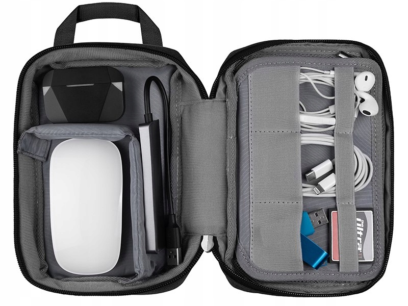 Дорожный органайзер TRACER TO2 Дорожный органайзер TRACER T02 — чрезвычайно практичный инструмент для путешественников. Если вы цените порядок и хотите, чтобы во время поездок все было под контролем, стоит приобрести органайзер для путешествий TRACER T02. Благодаря этому ваши вещи всегда будут хорошо организованы и легко доступны, без необходимости поиска в чемодане или рюкзаке. Это идеальное решение для людей, которые хотят избежать стресса при поиске необходимых вещей. Органайзер TRACER T02 позволяет безопасно хранить самые важные проездные документы, например, паспорт или авиабилеты, а также мелкие предметы, например, SIM-карты или кабели для зарядки электронных устройств. Позаботьтесь о своем комфорте в путешествии и выберите органайзер для путешествий TRACER T02. • Идеально подходит для путешествий • Гладкая застежка-молния для легкого открытия и закрытия • Идеально спланированное внутреннее пространство обеспечивает идеальную организацию пространства. • Используемый материал обеспечивает базовую защиту от ударов и влаги • 1 внутренний карман на молнии • 1 внешний карман на молнии, сетчатые отделения/отдельные места для зарядного устройства, мыши, кабелей, карт памяти, эластичных внутренних резиновых ремешков • Размеры 21x14x5 см Ниже приведены некоторые особенности, которые делают его идеальным спутником в каждой поездке: HandyDimensions Размер 21х14х5 см позволяет легко поместить его в ручную кладь. Благодаря этому вам не придется беспокоиться о том, что он займет слишком много места в чемодане. Внутренние и внешние карманы Карманы на молнии, один внутренний и один внешний, — это не только дополнительная защита от потери мелких вещей, но и способ сохранить органайзер в порядке. Внутренние отделенияВнутренние сетчатые отделения — идеальное место для хранения всех типов зарядных устройств. Они позволяют легко найти нужный аксессуар, не обыскивая весь органайзер. Выделенные места для аксессуаров. Выделенные места для мыши, карт памяти и кабелей — отличное решение для людей, которые не представляют себе путешествия без любимой электронной техники. Защита от повреждений и влаги. Резиновые эластичные внутренние ленты защищают устройства, хранящиеся в органайзере, от повреждений, а также отлично защищают их от ударов и влаги. Высококачественные материалы. Высококачественные материалы, из которых изготовлен органайзер, обеспечивают базовую защиту от повреждений содержимого. Гладкая молния позволяет легко открывать и закрывать органайзер, а хорошо спланированное внутреннее пространство позволяет идеально организовать пространство. Подводя итог, органайзер TRACER TO2 — идеальный выбор для людей, которые ищут функциональное и практичное решение для путешествий.