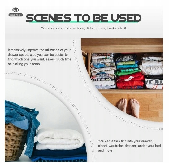 Этот набор органайзеров Clevaful из 6 сетчатых ящиков — идеальное решение для организации вашей одежды и постельных принадлежностей в гардеробе и комоде. Он чрезвычайно удобен для хранения нижнего белья, носков, шарфов, леггинсов, юбок, футболок, джинсов и многого другого.