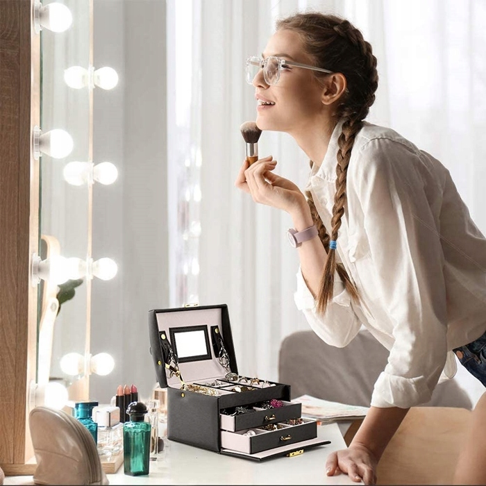 - Оснащен зеркальцем, благодаря которому вы легко сможете надеть серьги или оценить свой внешний вид.