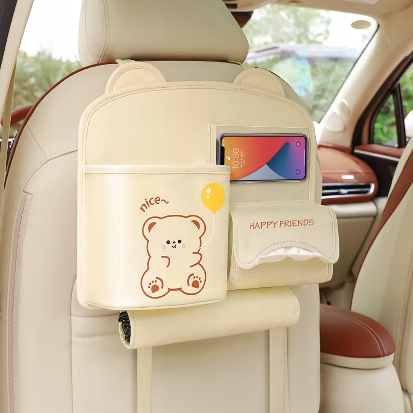 Органайзер на заднее сиденье автомобиля, коробка для салфеток из искусственной кожи, многофункциональная сумка для телефона, легко устанавливаемый органайзер для хранения в автомобиле, медведь
