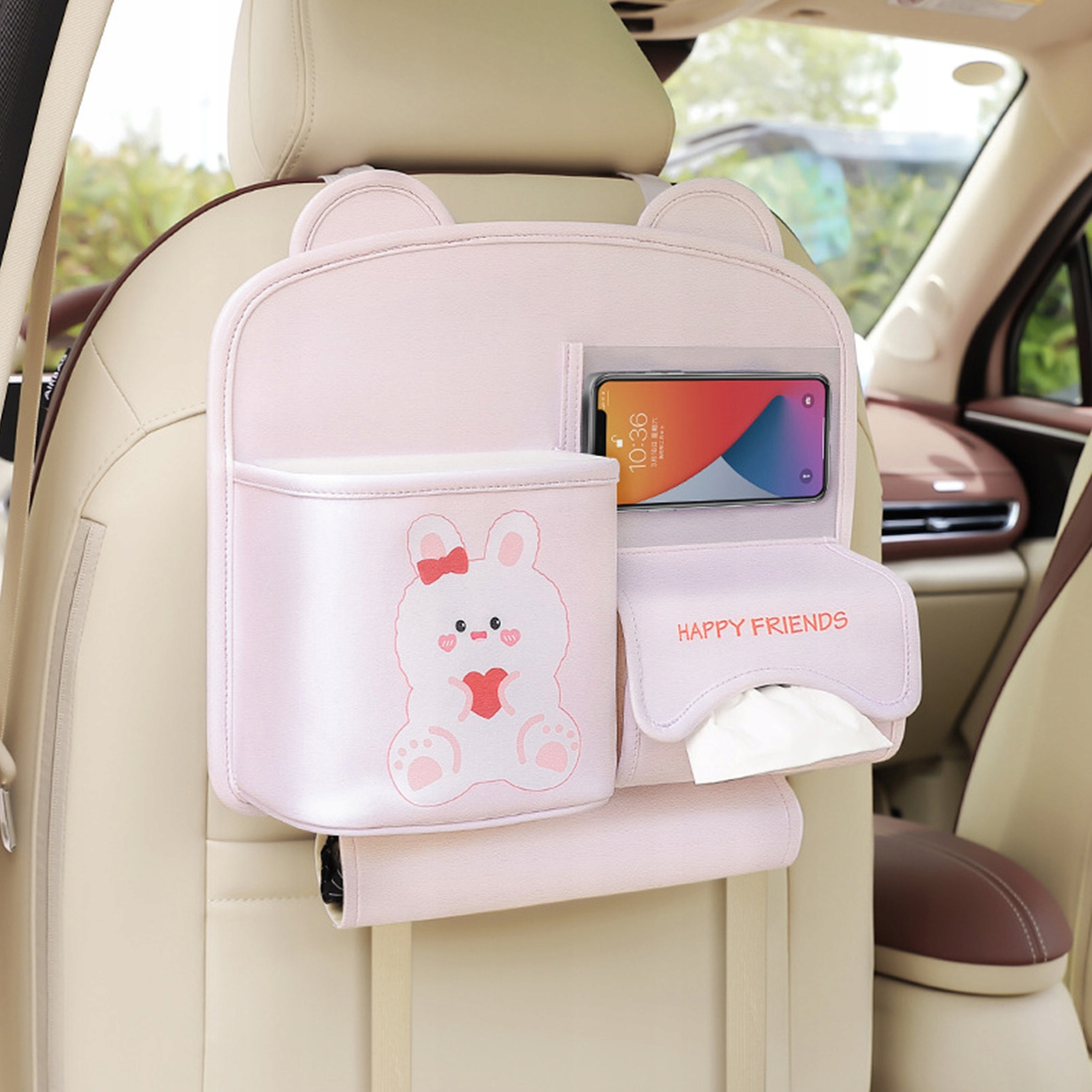Органайзер на заднее сиденье автомобиля, коробка для салфеток из искусственной кожи, многофункциональная сумка для телефона, простая установка, органайзер для хранения автомобиля, кролики