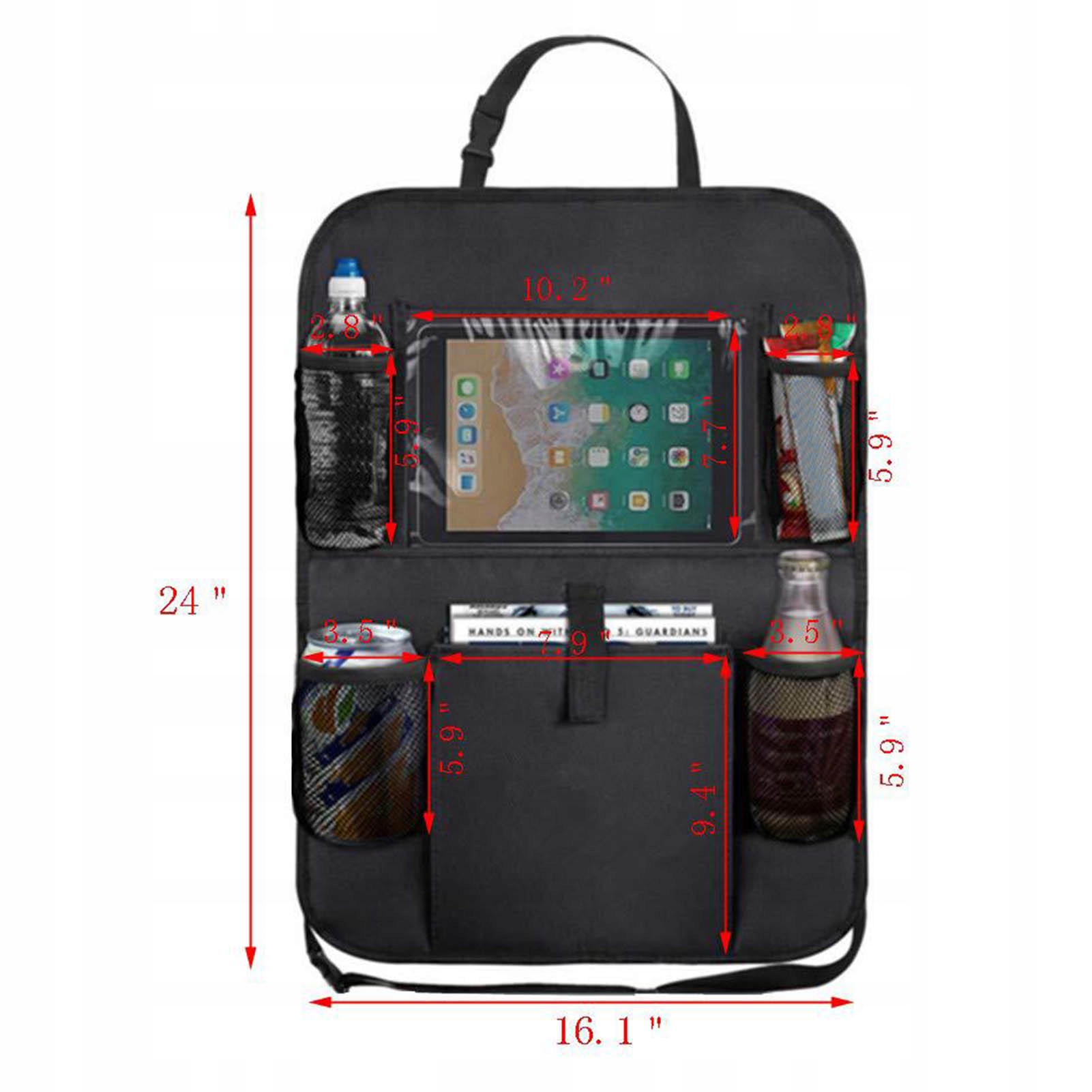 1. Органайзер для заднего сиденья: полностью закрывая спинки передних сидений, вы легко защитите автокресло от пыли, грязи и отпечатков обуви, всегда сохраняя ваш автомобиль чистым. 2. Карман Muti: 9 карманов для хранения и 1 держатель для планшета (до 10 дюймов) обеспечивают идеальное решение для хранения закусок, детских игрушек, зонтиков, бутылочек и многого другого. 3. Размер: размер 24 x 16,14 дюйма/61 x 41 см подходит для большинства автомобилей и внедорожников и легко устанавливается для защиты спинки сиденья и хранения ваших вещей. 4. Материал высшего качества: Изготовлен из ткани Оксфорд, экологически чистый, водонепроницаемый матовый ПВХ защищает ваше сиденье от царапин, разливов, пятен, следов истирания, грязи, грязи и истирания. 5. Простая установка: 2 регулируемых ремня с пряжкой и центральная резинка могут быть установлены быстро и легко, удаляя грязь, отпечатки обуви и другие пятна влажной тканью.