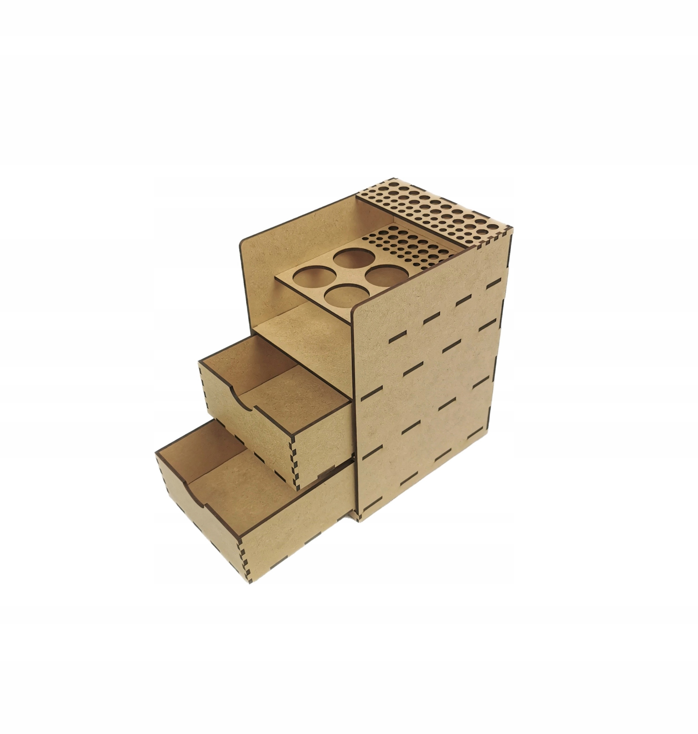 - Практичность: Два ящика, полка и специальное место для кистей позволяют удобно и упорядоченно хранить все необходимые принадлежности для моделирования.