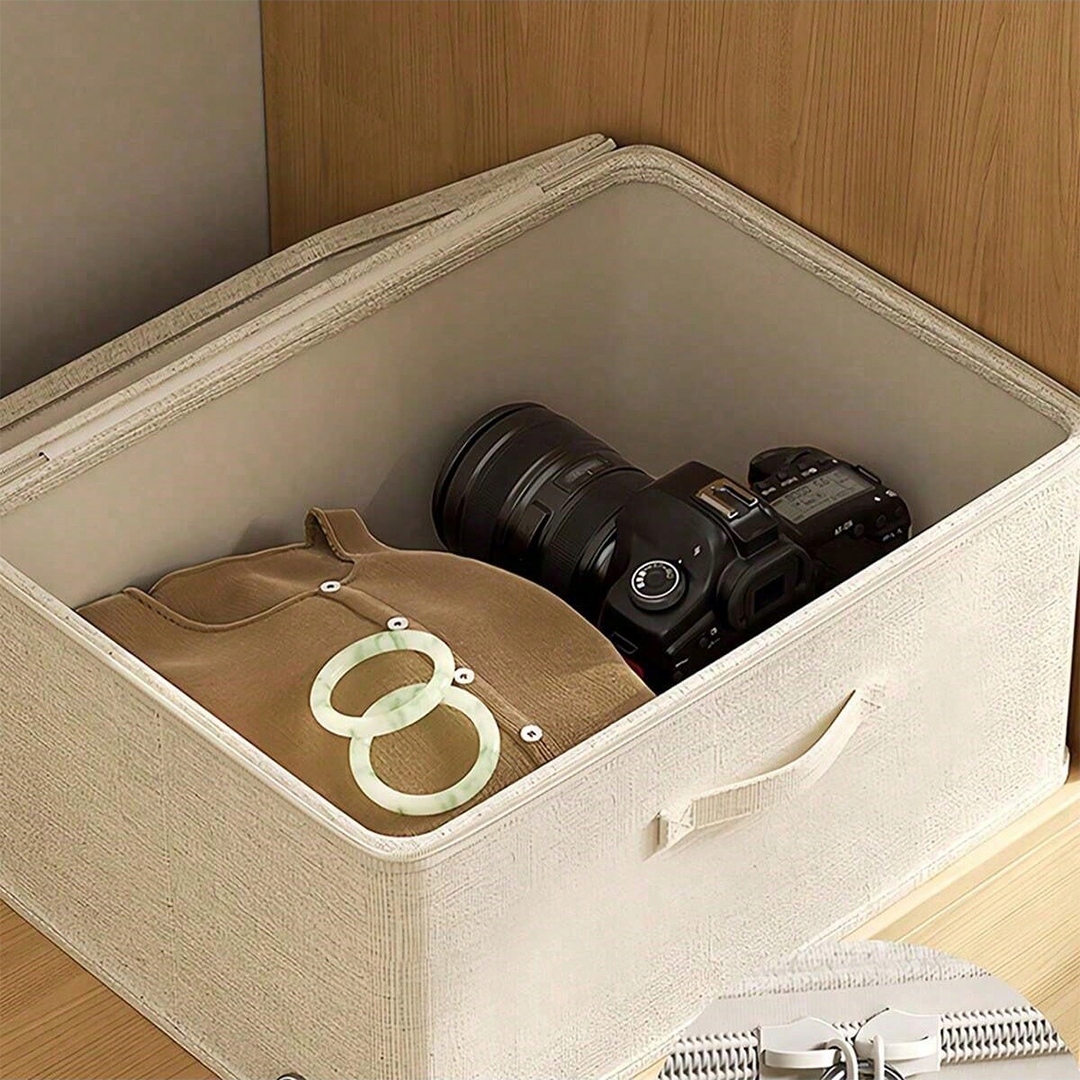 Размеры 38 × 25 × 23 см обеспечивают 24 литра пространства — идеально для нижнего белья, полотенец, игрушек, косметических аксессуаров, книг и мелкого текстиля.