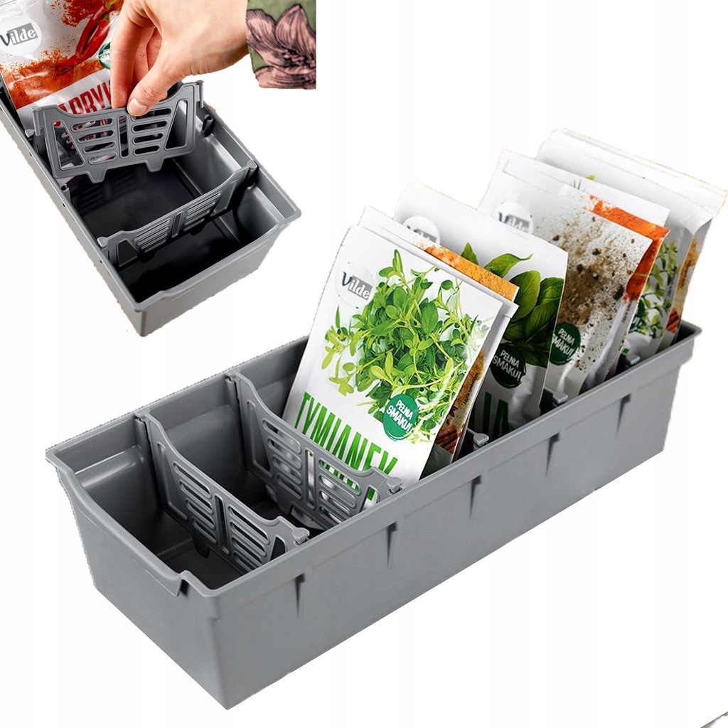 Кухонный контейнер с отделениями размером 30 х 13 х 8 см. Органайзер для специй позволяет упорядочивать как открытые, так и закрытые пакеты для специй. Благодаря этому вы сможете сортировать специи и всегда иметь под рукой тот или иной продукт. Вы быстро найдете подходящую сумку. Контейнер позволяет хранить пакетик в отделении, что предотвращает рассыпание специй. Изготовленные из материала высочайшего качества, они прослужат долгое время. Специи и травы будут храниться в порядке, а в одном органайзере будет храниться множество пакетиков с различными продуктами. Изготовлено в соответствии с европейскими стандартами.