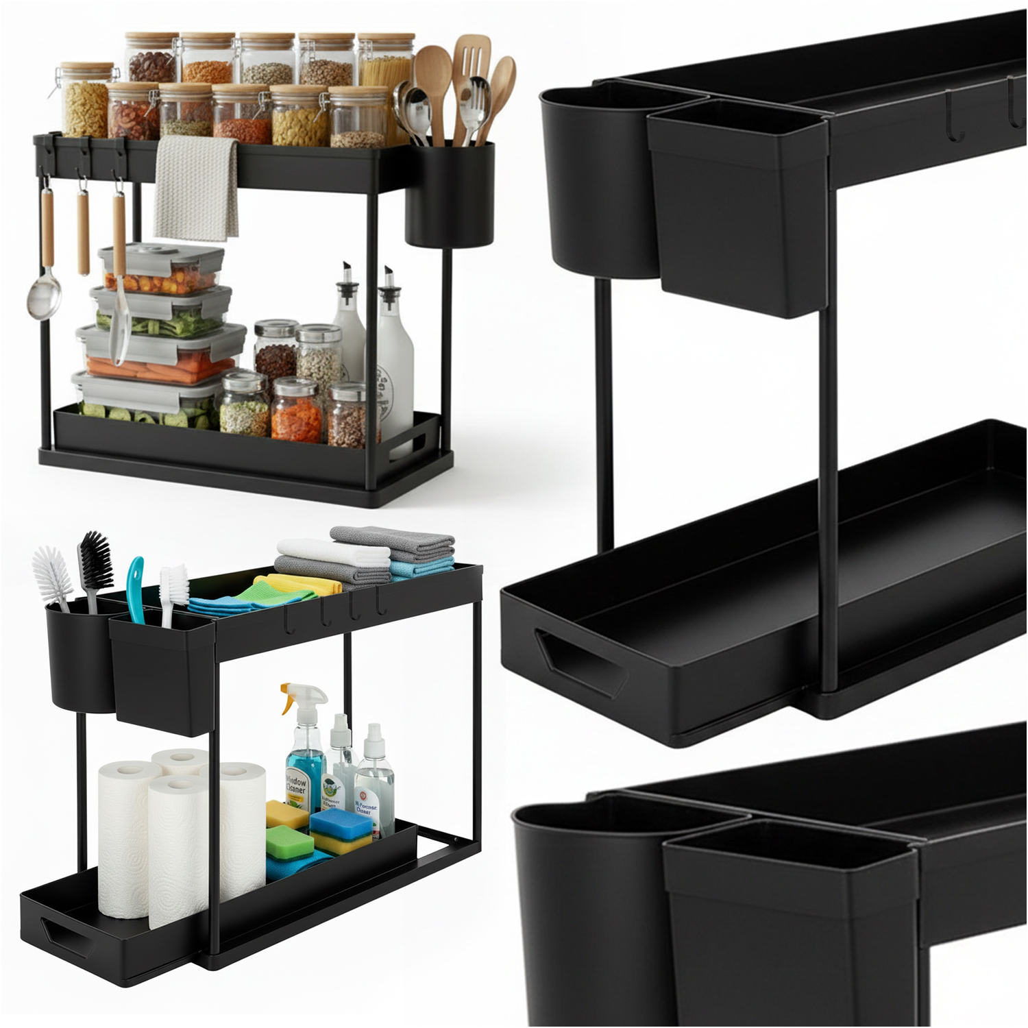 ОРГАНАЙЗЕР ПІД РАКОВИНУ 2 РІВНЕВИЙ ЧОРНИЙ КУХОННИЙ СТЕЛАЖ ВИСУВНА ПІДСТАВКА ПОЛИЦЯ
