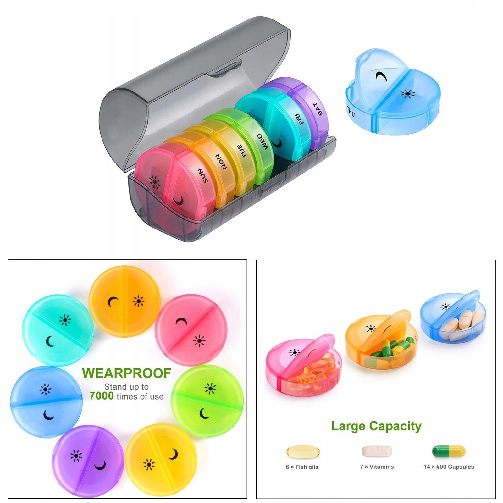 Не нужно помнить: 7-цветные коробки-органайзеры для таблеток позволяют лучше отслеживать прием лекарств 2 раза в день (утро и вечер), отметки дней на лицевой стороне напоминают, что и когда нужно принимайте каждый день, вам просто нужно наполнять наш органайзер для таблеток раз в неделю.