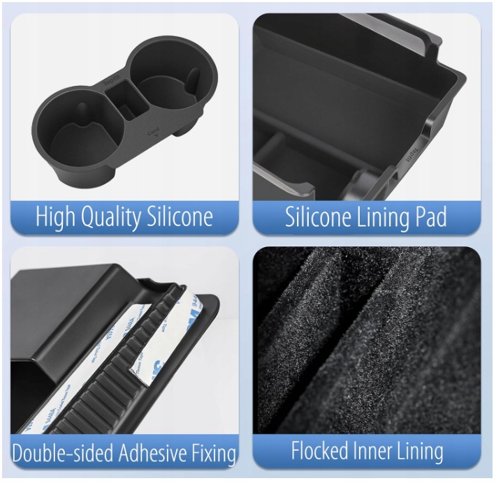 Высококачественные материалы: АБС-пластик + полка с флокированной центральной консолью, ящик для подлокотника из АБС-пластика + силиконовые накладки в комплекте, скрытый подлокотник из АБС-пластика, центральная консоль, подстаканник из экологически чистого силиконового материала, прочный и долговечный, разумное пространство для использования. ли>