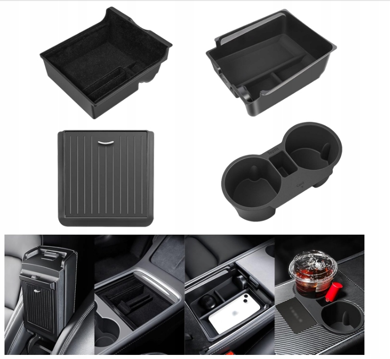 Вы получаете: ящик для хранения на центральной консоли Tesla Model 3/Y — 1 шт. + подлокотник для хранения, 1 скрытый подлокотник, 1 подстаканник на центральной консоли.