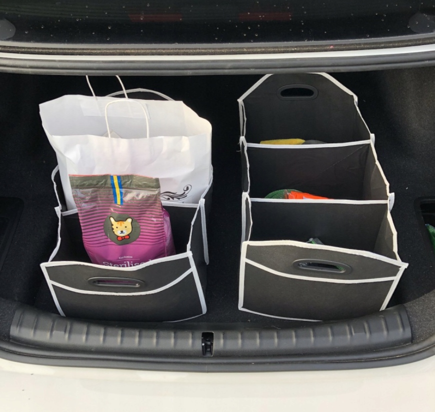 - Особенно органайзер пригодится для перевозки автохимии или детских игрушек. Помогает поддерживать порядок в автомобиле.