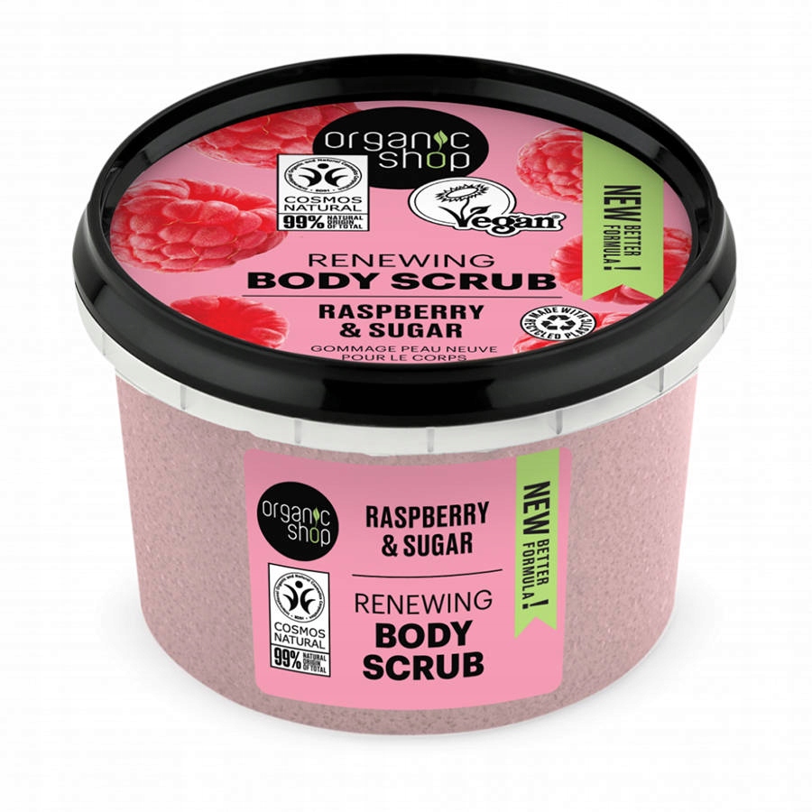 Пилинг для телаИдеальное сочетание органического экстракта малины и натурального сахара обеспечивает бережный уход за кожей. Органическая малина насыщает кожу питательными веществами, улучшая ее внешний вид и текстуру, а натуральный сахар обновляет ее.