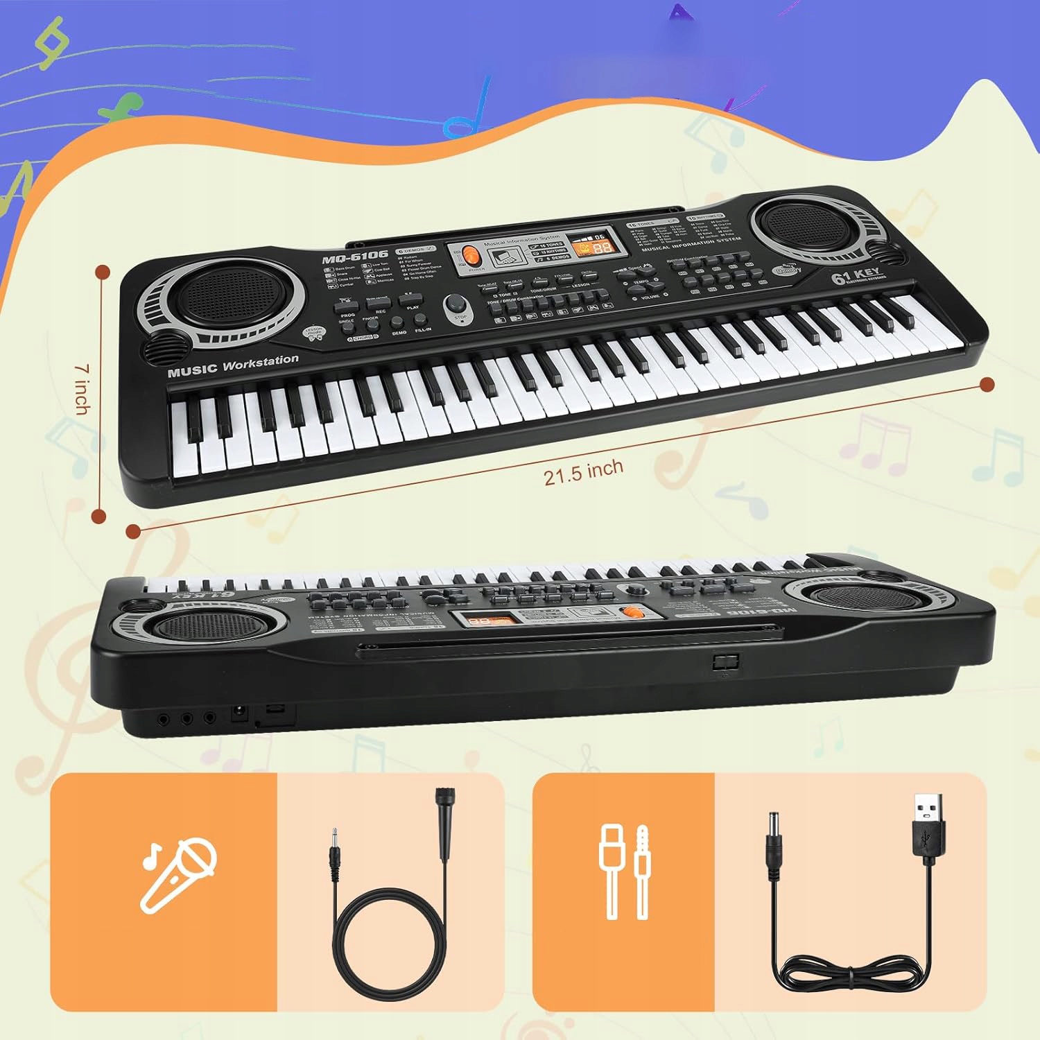 КЛАВИАТУРНОЕ ОРГАНО ПИАНО ДЛЯ ДЕТЕЙ, НАУЧАЮЩИХСЯ ИГРАТЬ, 61 КЛАВИША + МИКРОФОН
