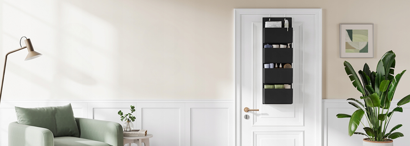 Организатор имеет 4 емкости кармана, которые позволяют максимально развить пространство за дверью. Благодаря этому вы получаете дополнительное место для хранения без необходимости установить полки. Это идеальное решение для небольших квартир или комнат, где считается каждый сантиметр.