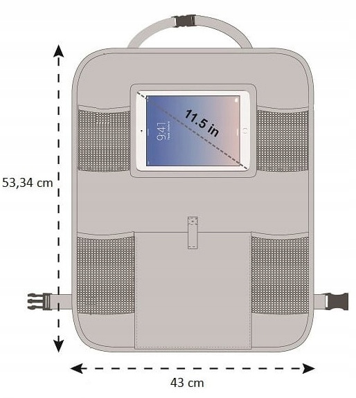Благодаря прочным лямкам и пластиковым застежкам вы можете быть уверены, что все, что вы положите в органайзер, останется там во время поездки. Подходит для большинства автокресел. Органайзер размещается за сиденьем водителя или пассажира.