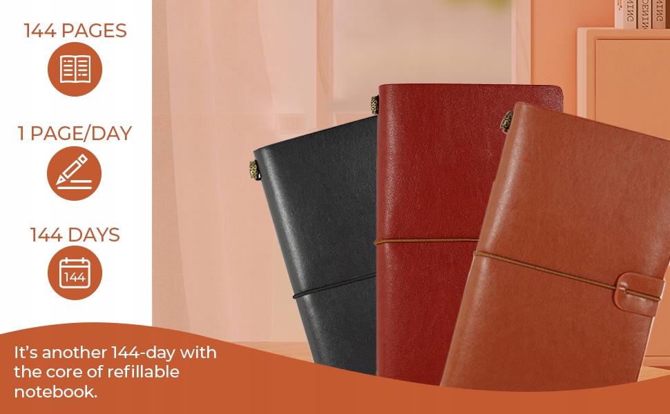 Блокнот для устройства включает в себя 2 страницы (72 листа/144 страницы), первоисточник (для заметок) и коричневую пустую страницу ( для рисования). Он также имеет 6 небольших карманов (двухсторонних) для кредитных карт или фотографий и большой закрытый карман для купюр, квитанций или телефонных звонков. Резинка помогает надежно закрыть блокнот. Это блокнот, который прослужит всю жизнь, поскольку его можно заправлять, а вкладыши можно приобретать по вашему желанию.