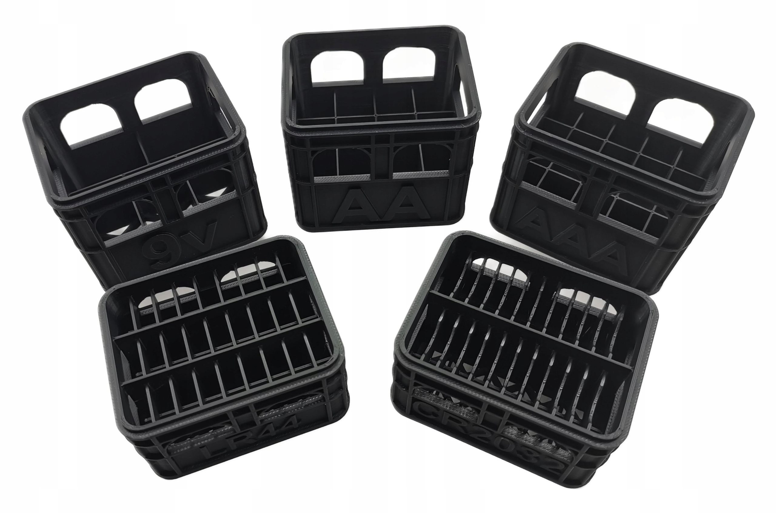 - Возможность штабелирования корзин друг на друга - Правильно спроектированные дно и верх коробки позволяют ставить корзины друг на друга без риска опрокидывания, что увеличивает возможность хранения большего количества батареек в порядке.