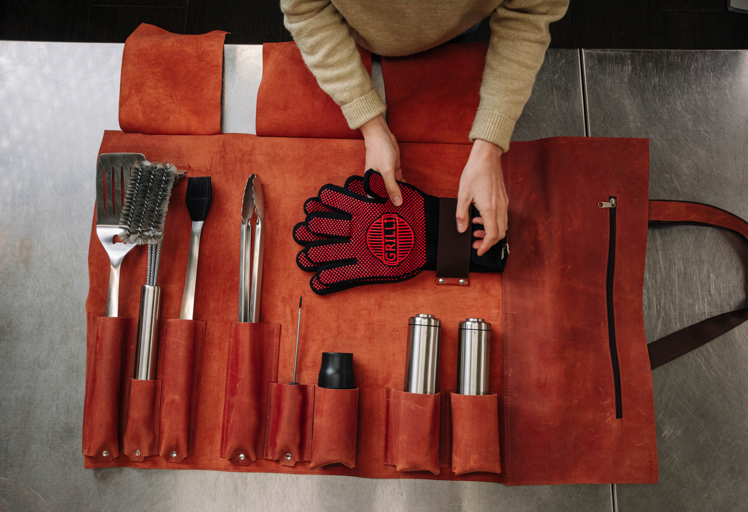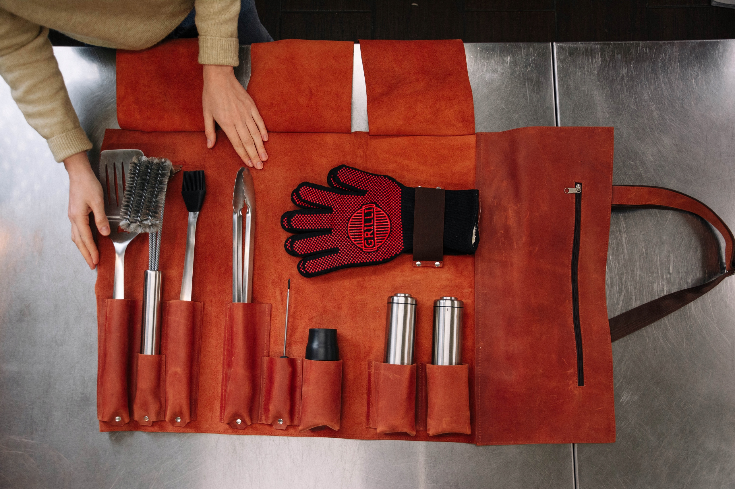 ОРГАНАЙЗЕР ДЛЯ ГРИЛЬНЫХ ИНСТРУМЕНТОВ НАБОР КОЖАНЫХ АКСЕССУАРОВ ПРЕМИУМ КАЧЕСТВА