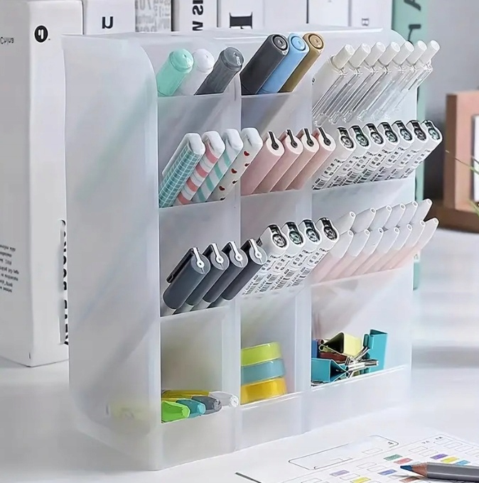 Создайте функциональное и стильное место для хранения — в нашем органайзере поместятся все необходимые принадлежности для письма и рисования. Благодаря продуманной конструкции вы можете легко хранить мелки, ручки, фломастеры, ручки и карандаши - всегда под рукой, готовые к использованию!