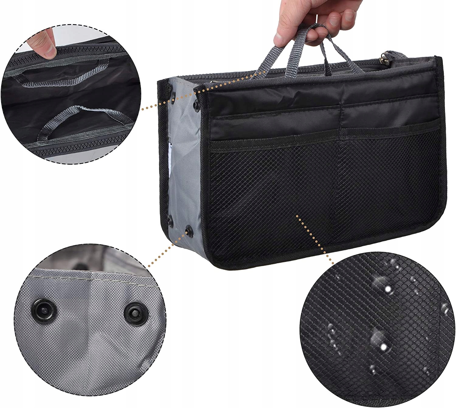 - Характеристики: ✅ 10 боковых карманов ✅ 2 отделения на молнии ✅ 1 среднее отделение ✅ b> боковое кнопки, защищающие органайзер от открытия.