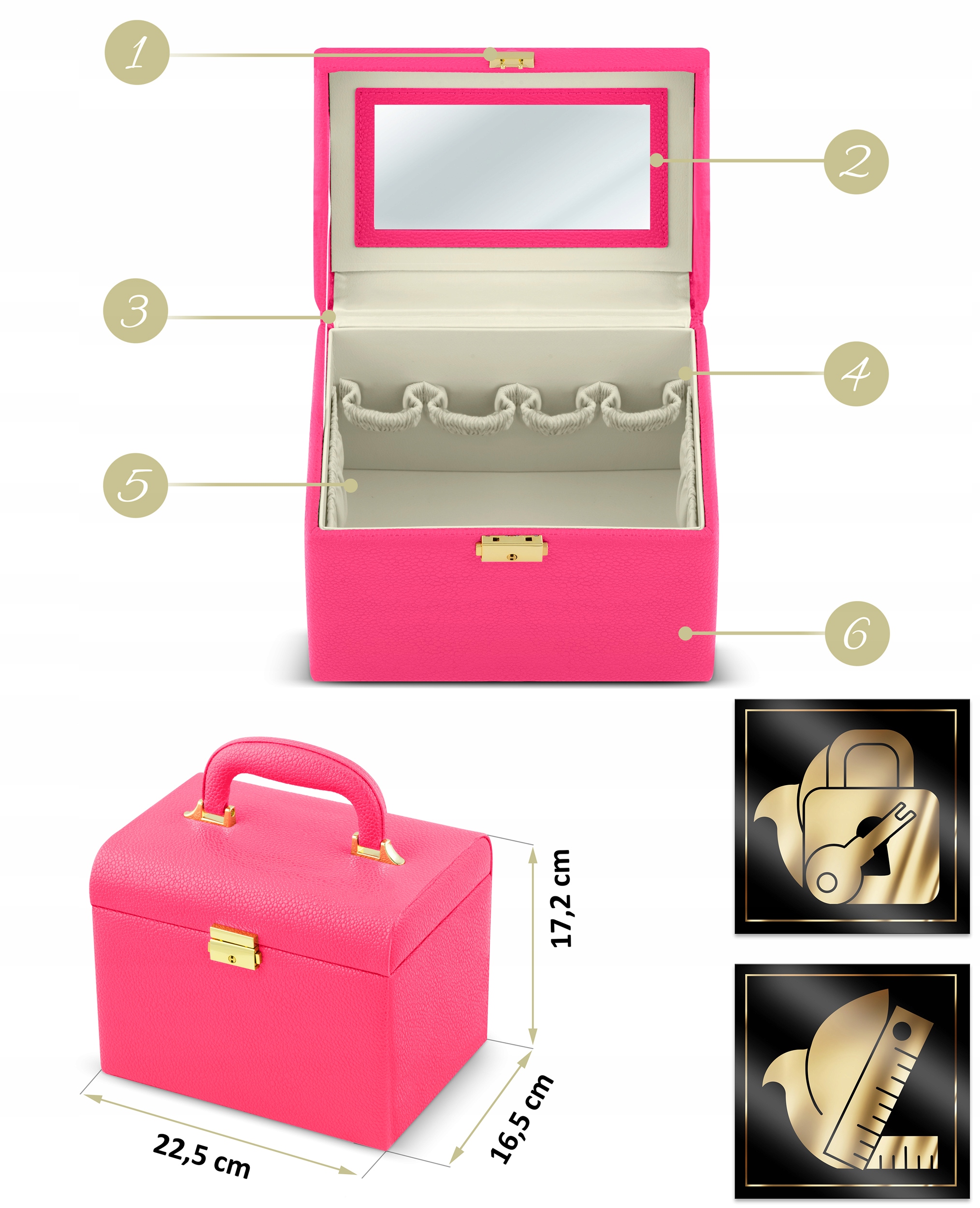 Этот органайзер удовлетворит как мечты девочек, так и потребности женщин. Достаточно вместительный, чтобы стать первым сундуком с сокровищами для девочки, и в то же время элегантный, как коллекция косметики для взрослой женщины.