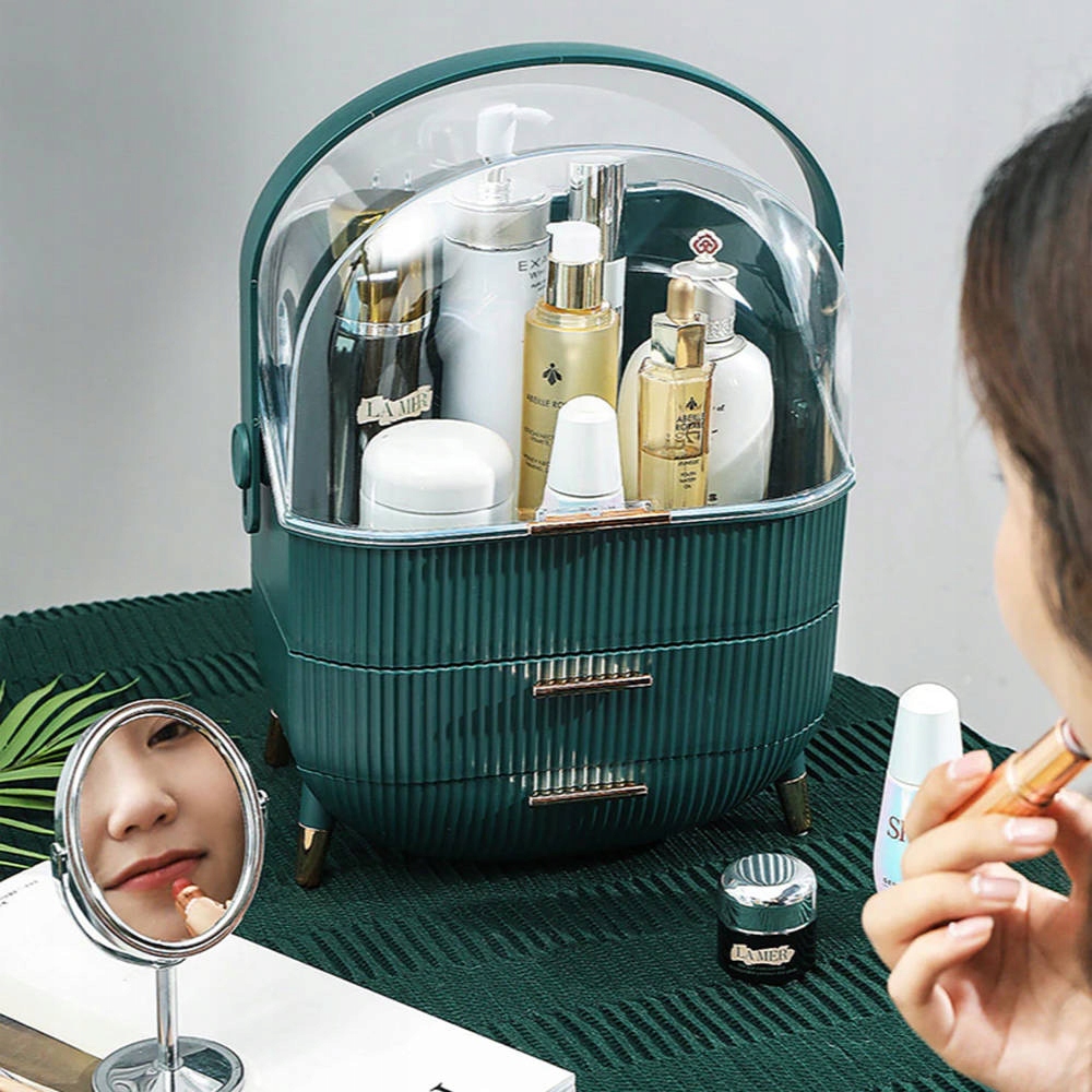 Идеальный тип органайзера с ящиками и полкой для людей, имеющих большое количество косметики, поскольку позволяет их систематизировать и обеспечивает легкий доступ к ним.