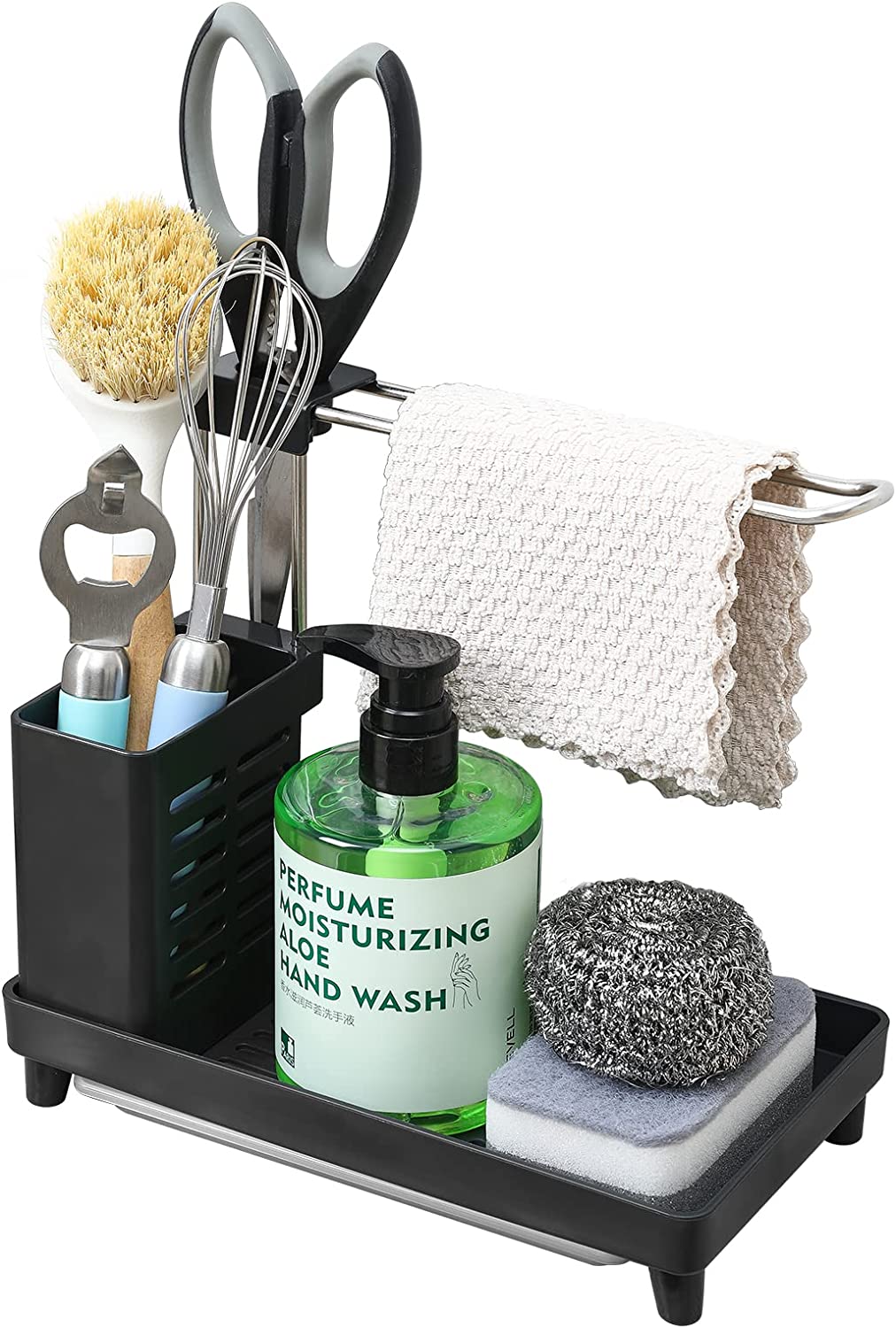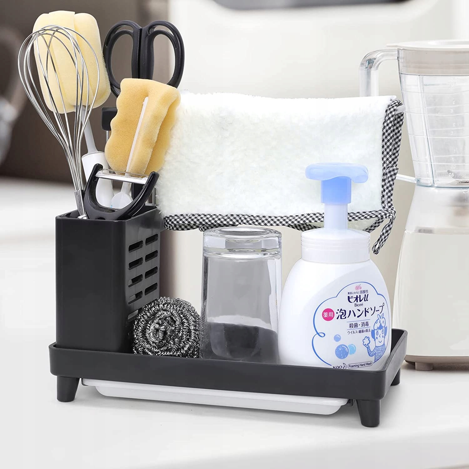 ✅Многофункциональный органайзер. Губка для хранения кухонной мойки имеет несколько функций хранения: штанга для подвешивания одежды, корзина для хранения столовых приборов и пустой поддон для слива губчатых щеток.