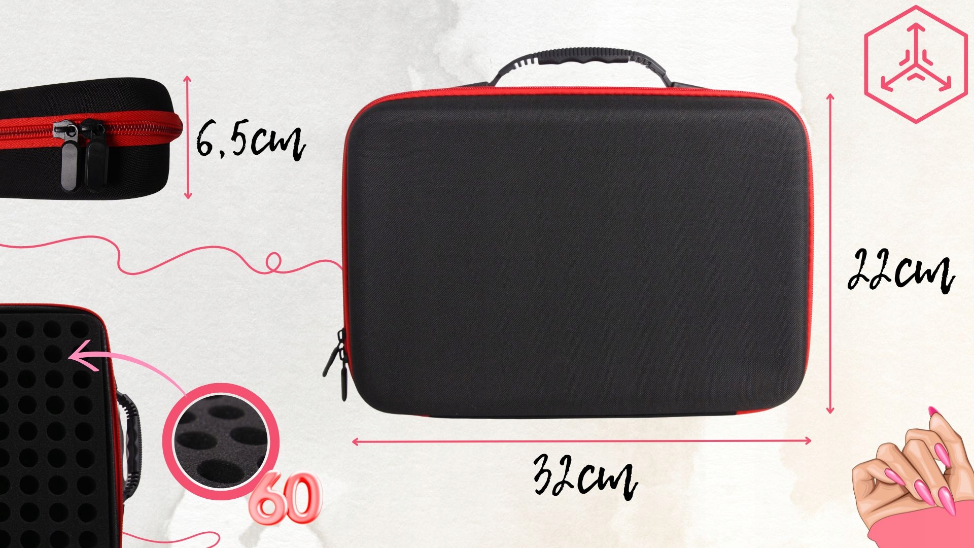 - ✅ Разработано для идеального заказа, наш багажник предлагает 60 мест для лаков, что позволяет легко поместить все ваши необходимые аксессуары для меток.