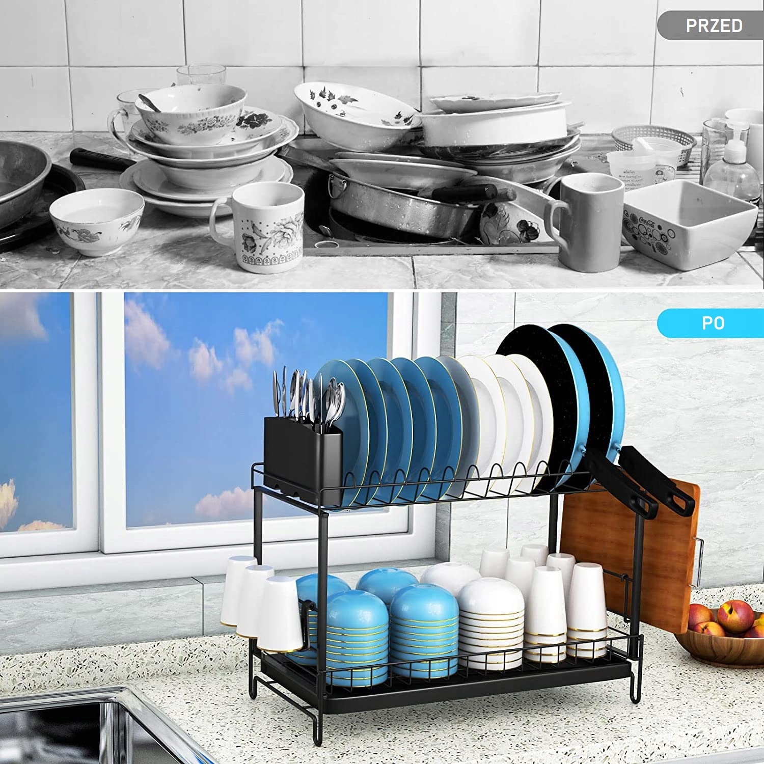 ОРГАНІЗАТОР ДЛЯ ПОСУДУ СУШКА ПІДНОС КОШИК 2 РІВНІ
