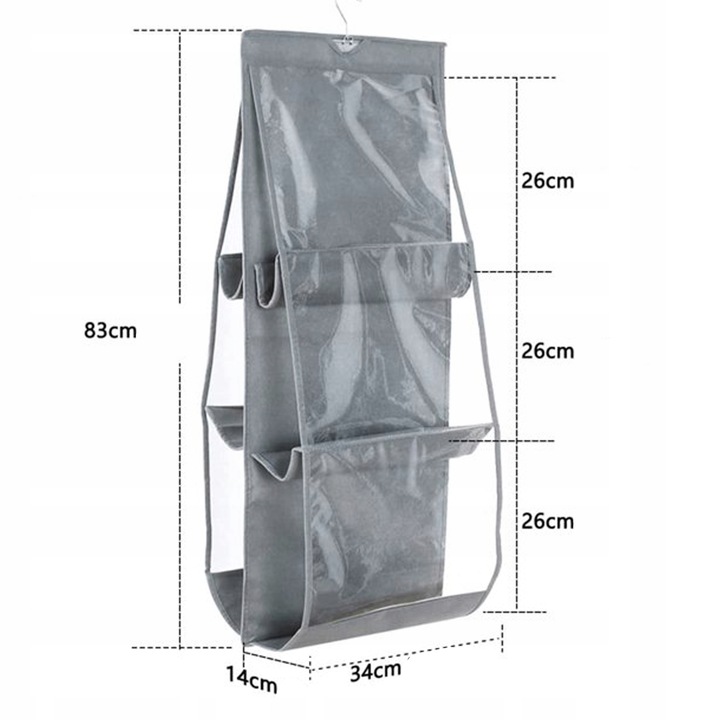 ✅Организатор имеет 6 прозрачных карманов, в которых можно хранить до 12 сумок.