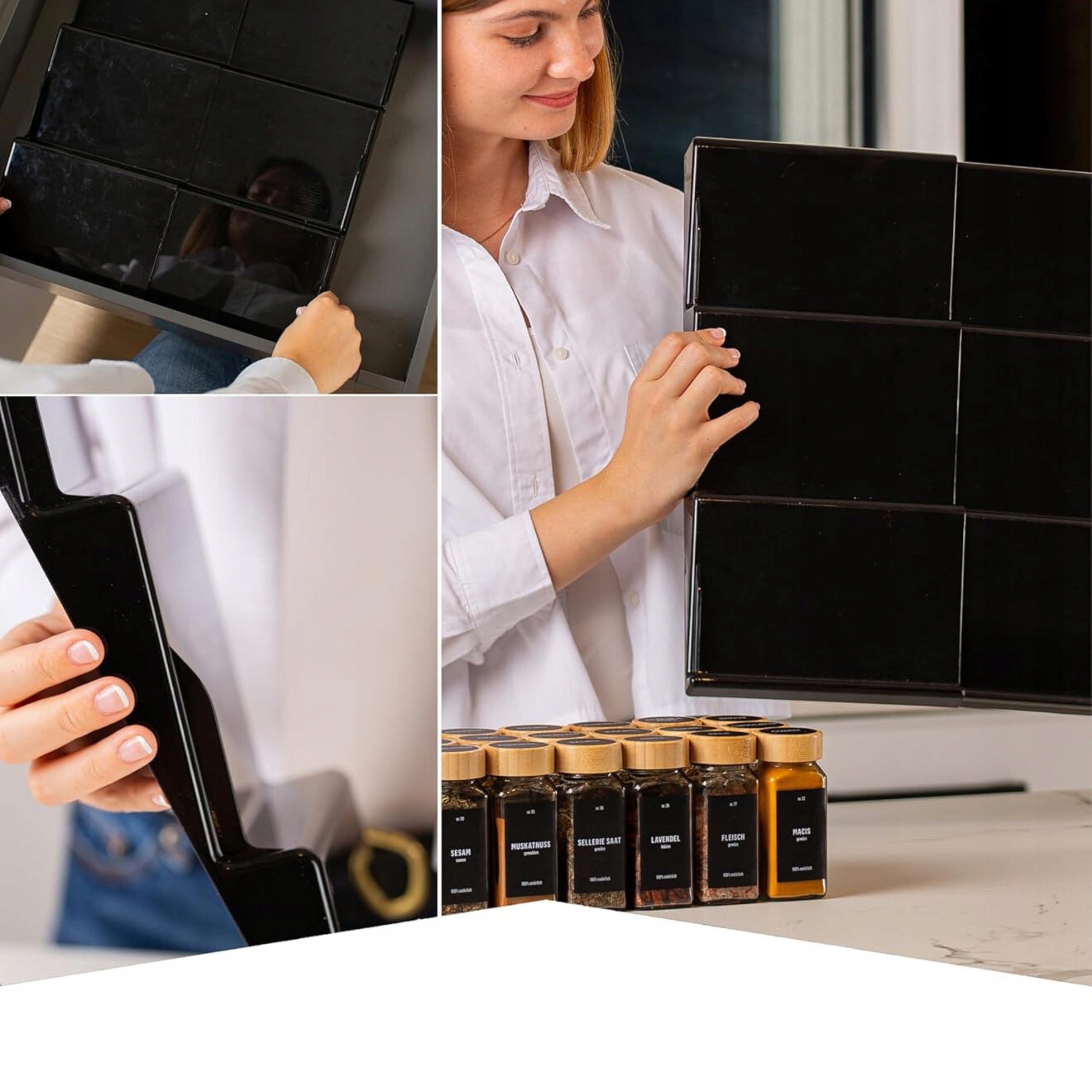 Потратьте заказ на кухне! 🧂 Вам сыт по горло беспорядком в ящике и без доступа к специям, когда они вам нужны? У нас есть идеальное решение для вас! Наш организатор для хранения специй поможет вам раз и навсегда принести заказ на кухне. Теперь ваши специи всегда будут под рукой, с легким доступом к каждой банке.