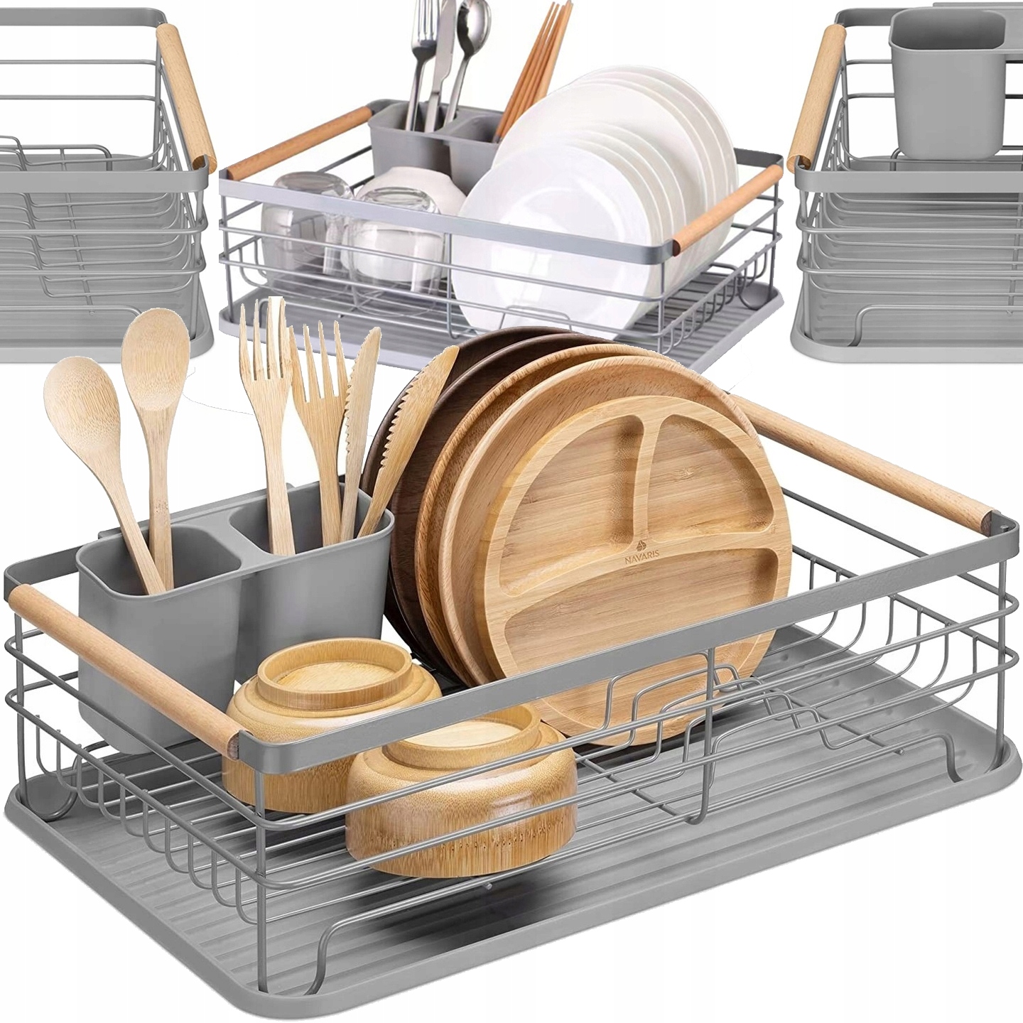 ♨️ Серый металлический каркас и деревянные вставки идеально впишутся в интерьер любой кухни. Ручки имеют закругленные и гладкие края, что делает их удобными в использовании. Вся металлическая конструкция покрыта порошковой краской в единый цвет – серый. Все это прекрасно смотрится на кухне и прекрасно выполняет свои функции. Посуда на сушилке быстро сохнет, а благодаря водосборной подушке сушилку можно разместить практически где угодно.