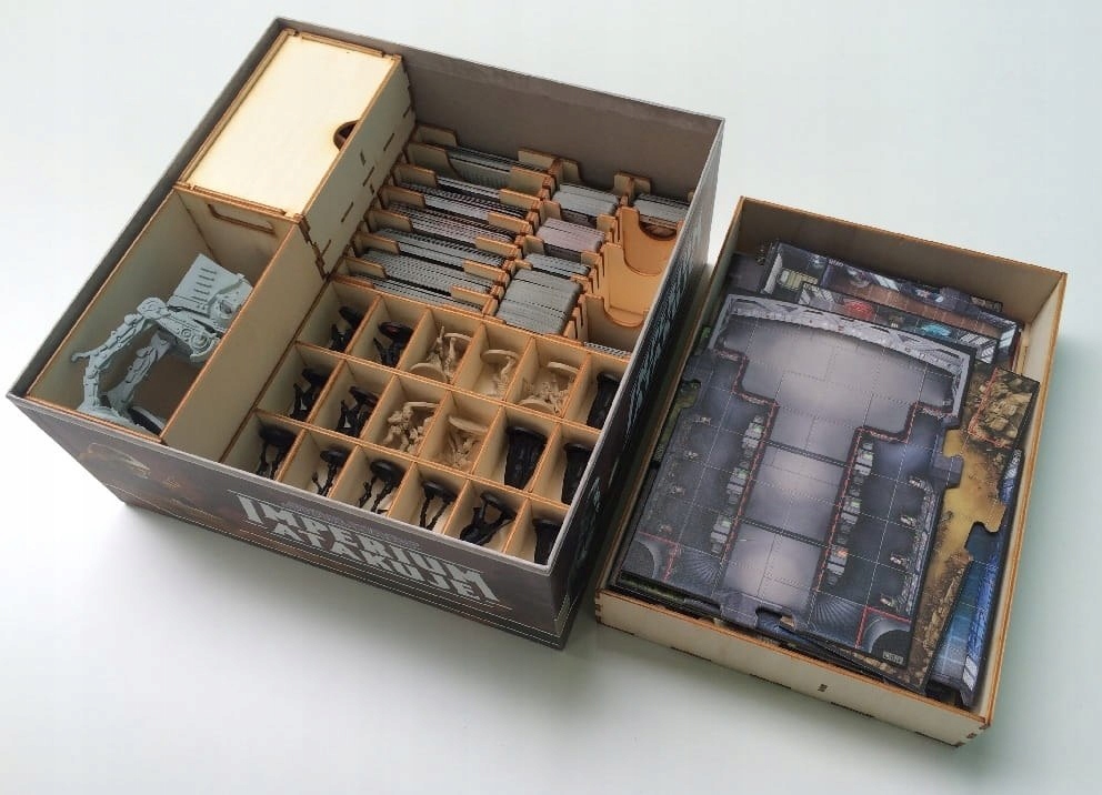 Вставка, которая идеально вписывается в игру Imperial Assault. В форму поместятся все карты в обложках, а также все виды маркеров и фигурок из основной игры. Также есть место для расширения Twin Shadows и небольших расширений.