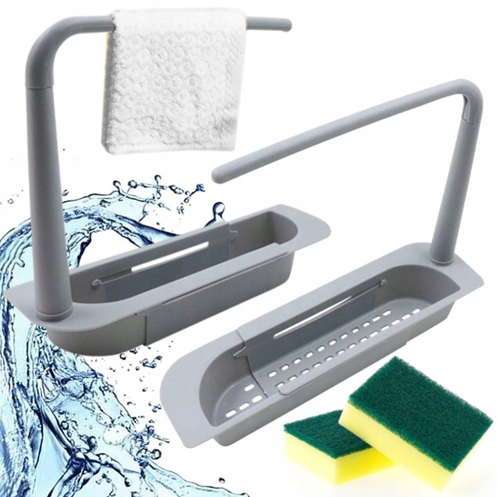 V2 TELESKOPOWY ORGANIZER NA GĄBKĘ DO ZLEWU ROZSUWANY OCIEKACZ Z WIESZAKIEM