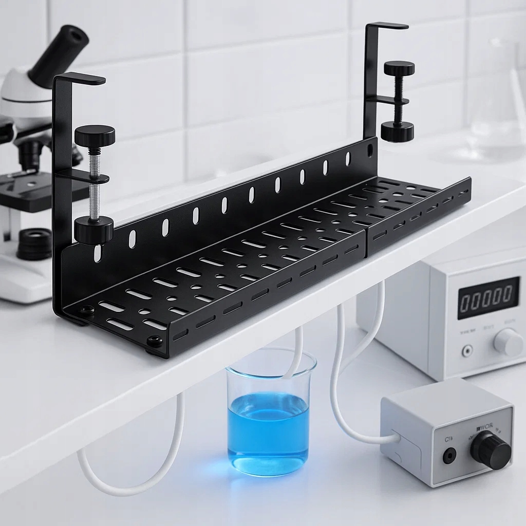 - Идеально для организации источников питания, кабелей и мощных планок, которые устраняют запутанные под столом.