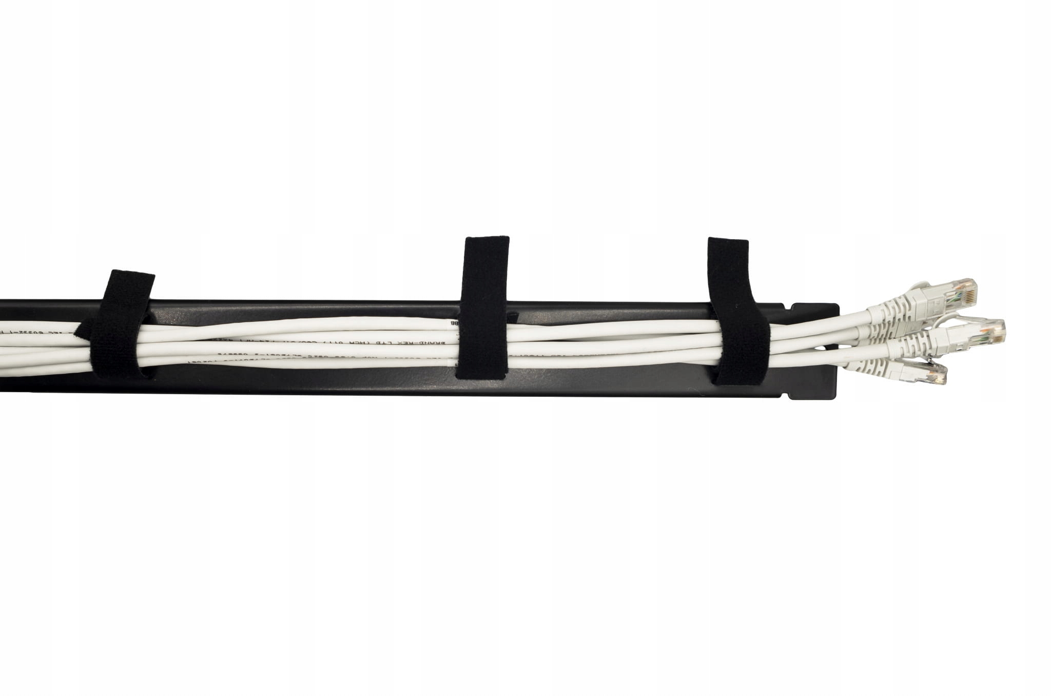 Органайзер высотой 1U изготовлен из листового металла и покрыт порошковой краской черного цвета. Монтажные отверстия позволяют быстро и надежно установить его в стандартный 19-дюймовый шкаф RACK. Отверстия в конструкции органайзера используются для крепления любой организующей ленты, например: