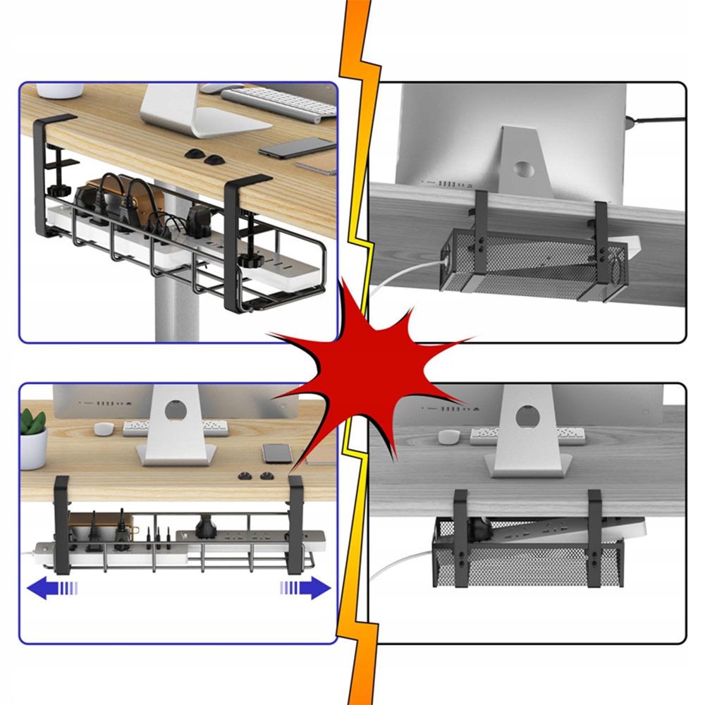 - Он обеспечивает достаточно места для простого хранения кабелей, источников питания, планок питания и т. Д., Сохраняя их в порядке и заказе. Клей, клипы могут быть легко удалены и переустановлены, они могут быть прикреплены к таблицам толщиной до 4 см и почти универсальны для большинства таблиц.