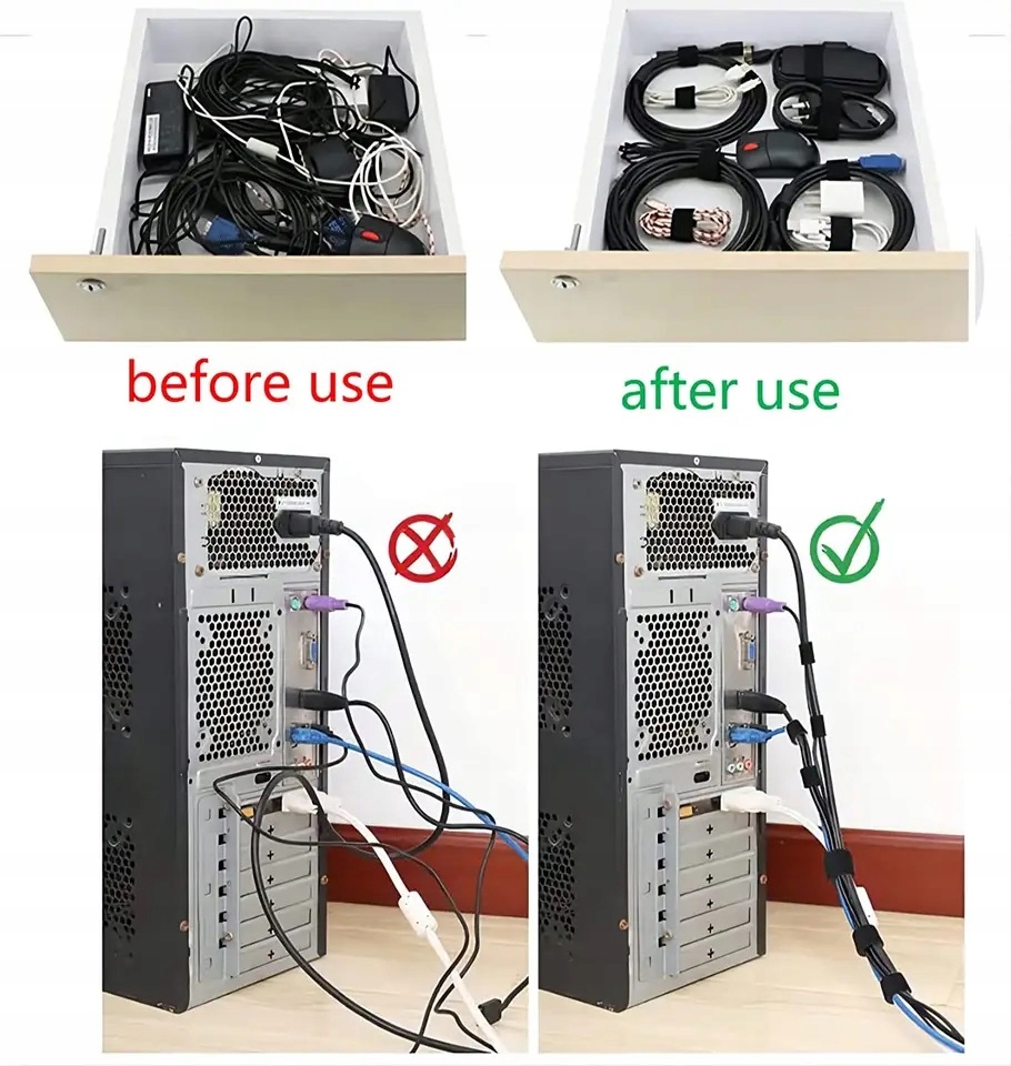 Организатор кабеля является важным инструментом для каждого человека, который хочет сохранить порядок на своем рабочем месте или квартире. Лента на липучке изготовлена из постоянного нейлона, , который обеспечивает не только длительный срок службы продукта , но также и сопротивление повреждению механическим и действием неблагоприятных погодных условий. Лента черная, которая подходит для множества разных стилей и добавляет элегантность к любому интерьеру.