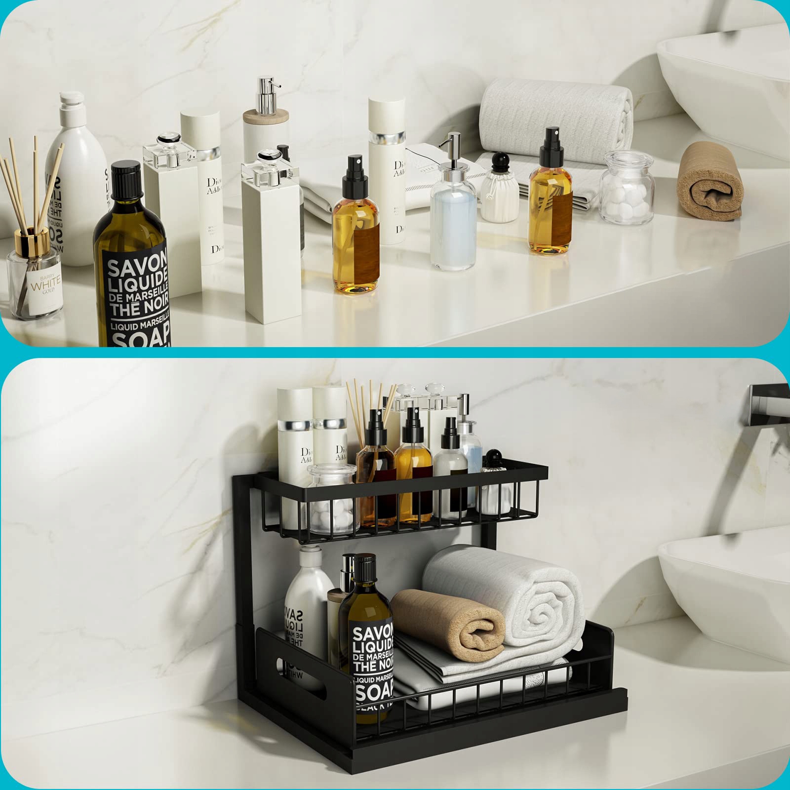 Двухслойный L -образный конструкция, узкий в верхней и широкой на дне, максимизирует вертикальное пространство раковины, которая обеспечивает достаточно пространства для хранения в большинстве ванных комнат или ванных комнат или кухни