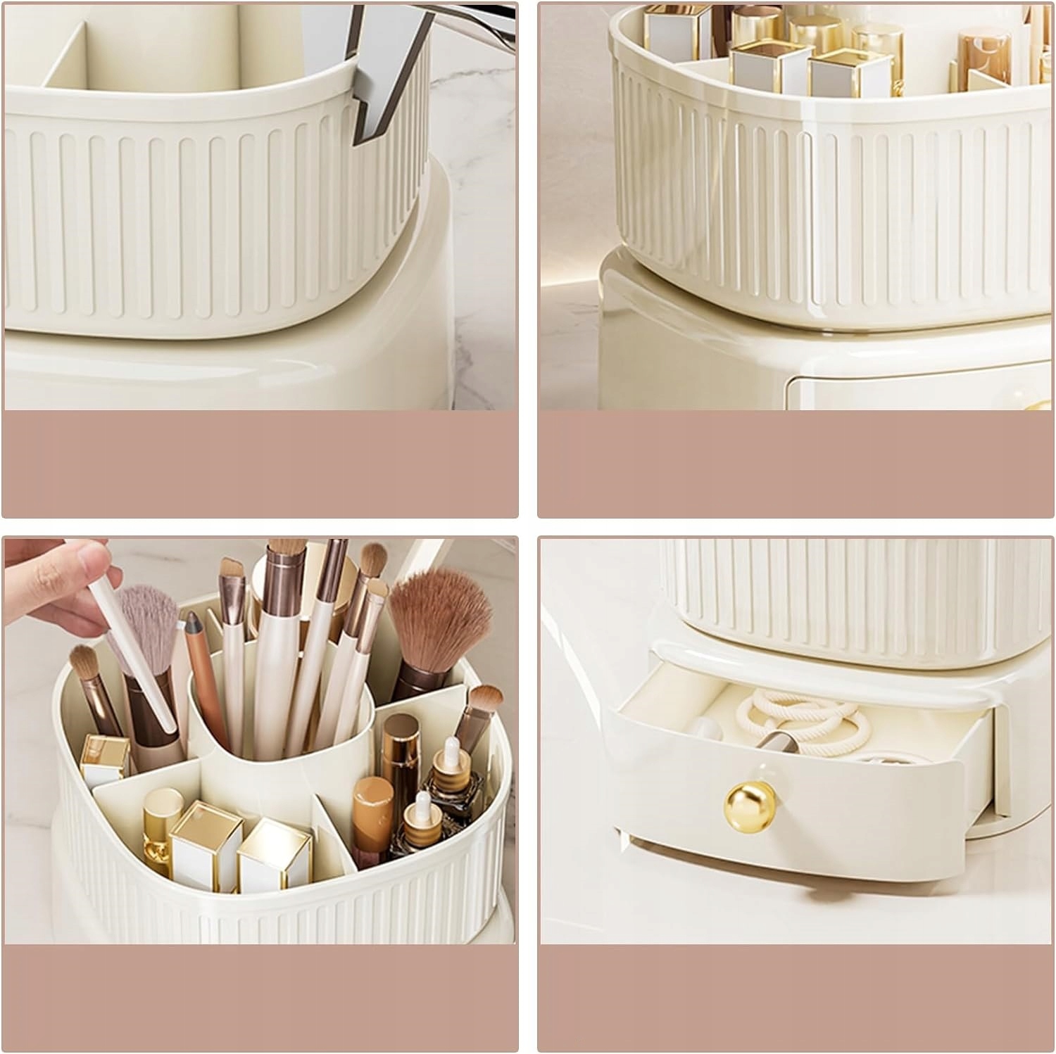 ❇️ Несколько зон, предназначенных для размещения всей необходимой косметики, аксессуаров и украшений, включая вращающуюся на 360 градусов часть и вместительный ящик.