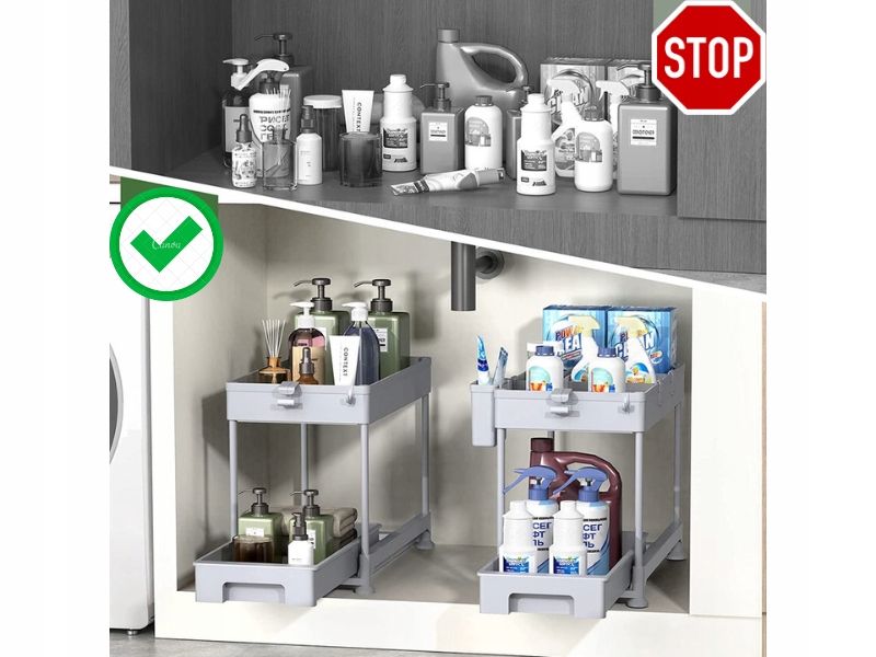✅ Широкое использование и многофункциональность - выдвижной органайзер под раковиной идеально подходит для хранения кухня, ванная, постирочная, кладовая, гардероб и везде, где это применимо.