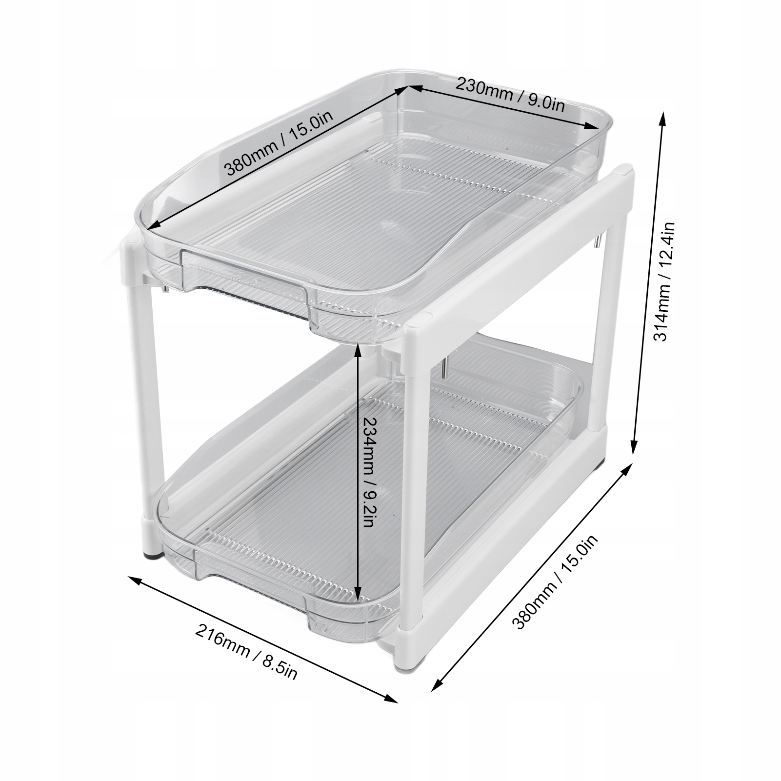 4. [Высокая практичность]: двухуровневый органайзер под шкафом с корзиной идеально подходит для организации дополнительного места для хранения в кладовой, под раковиной или на столешнице.