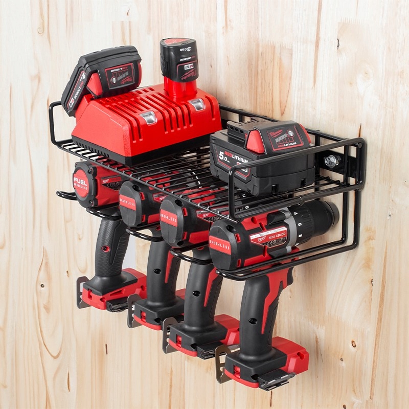 Полка оснащена четырьмя ручками, что позволяет практично хранить инструменты, а также полкой для аксессуаров.