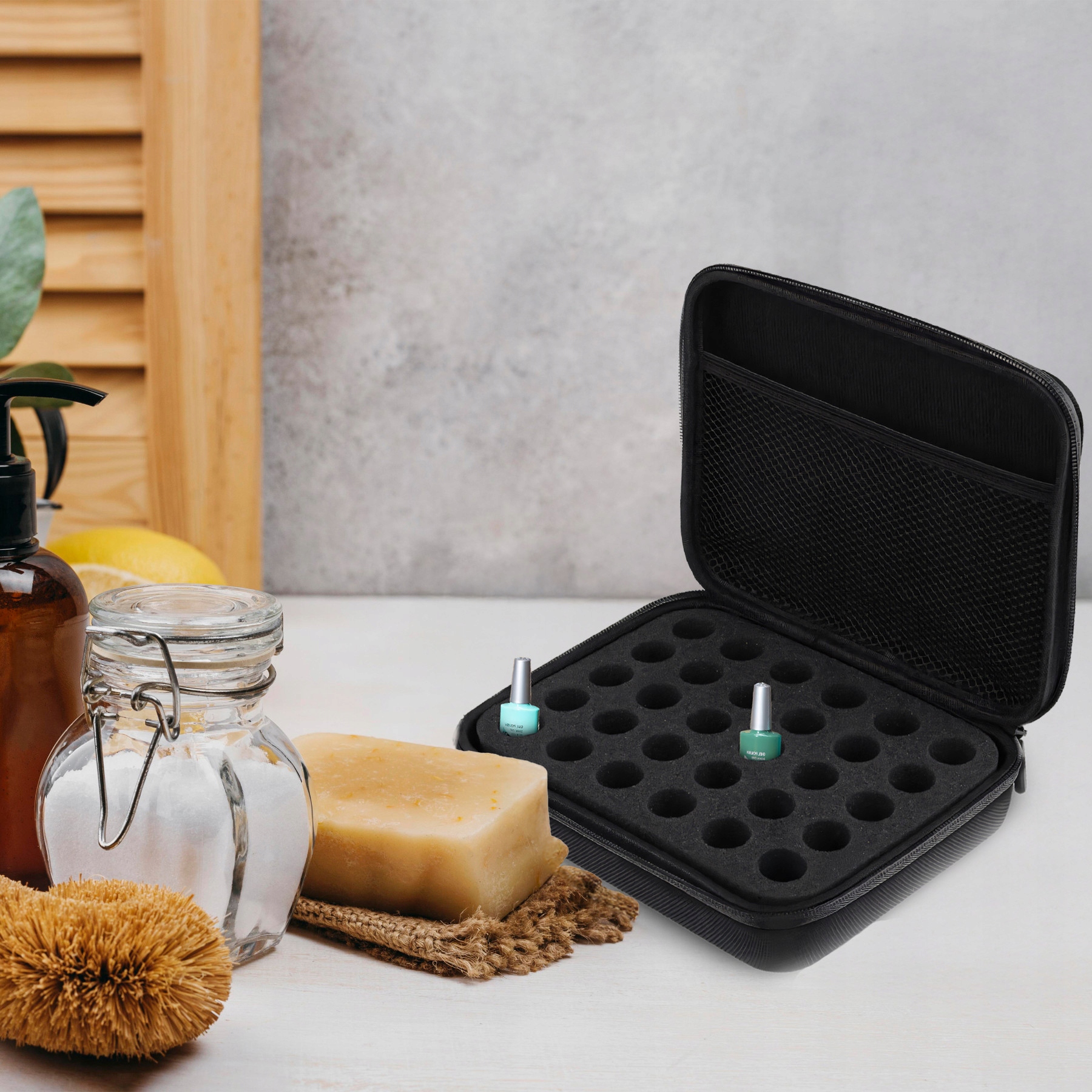 пенопластовой сепаратор с 30 отверстиями для бутылок с маслами или лаком является данной защитой во время перемещения, снижая риск потенциального разлива или повреждения бутылок с эфирными маслами. После удаления вставки из губки дело также может выступать в качестве косметолога для других аксессуаров. это не только практично, но и стильное решение. Стоит отметить, что дело построено так, что лучше всего защищен эфирными маслами от различных угроз, таких как царапины, воздействие или возможные утечки.