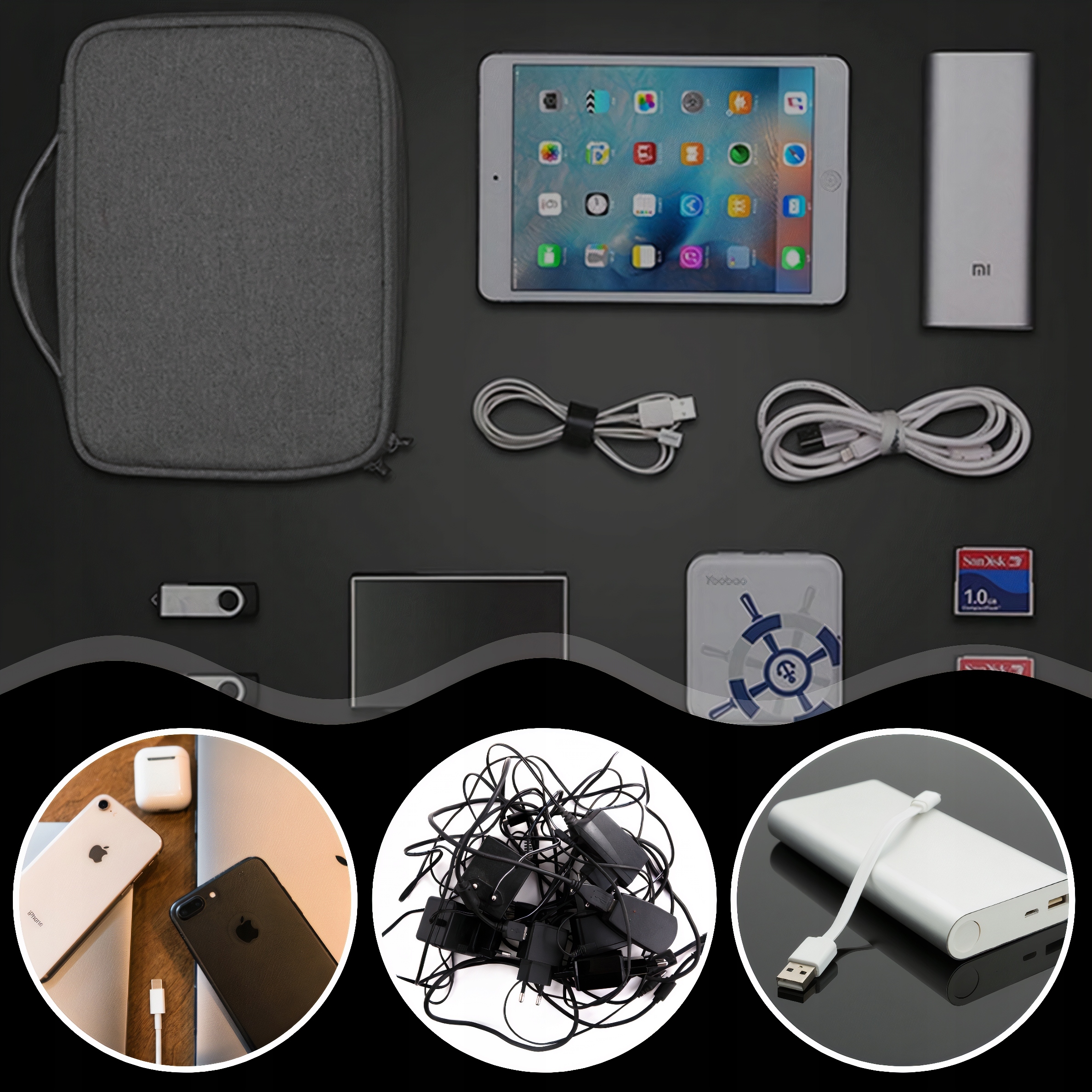 ОРГАНІЗАТОР ПОДОРОЖІВ СУМКА З КАБЕЛЕМ ЗАРЯДНОГО ПРИСТРОЮ