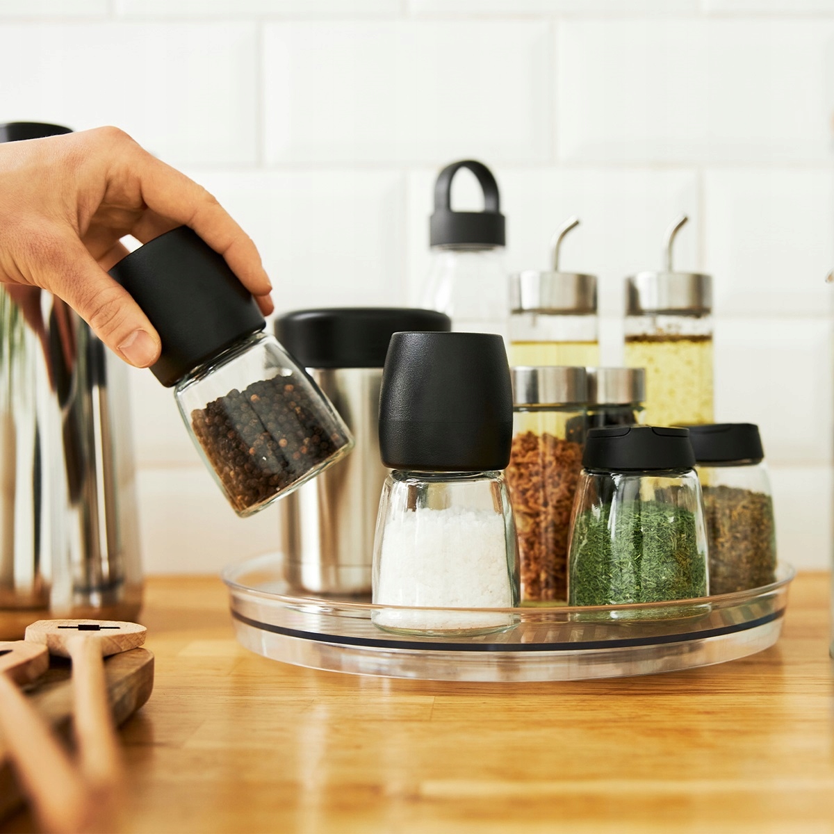 Организатор кухни, благодаря своей функции вращения, будет размещать множество продуктов, сохраняя при этом место в холодильнике, кухонных шкафах и ящиках. Полезно на кухне, на кухонной стойке - 1 контейнер и многие продукты - облегчит организацию во время приготовления пищи (специи, масла), и во время подачи он будет длиться на столе. Каждый достигнет и повернет поднос, чтобы использовать свой любимый вкус (кетчуп, горчица, соус и т. Д.). Он будет держать порядок на полках, продукты легче найти, потому что вам не нужно перемещать банки, банки, сумки - просто поворот, и мы видим все.