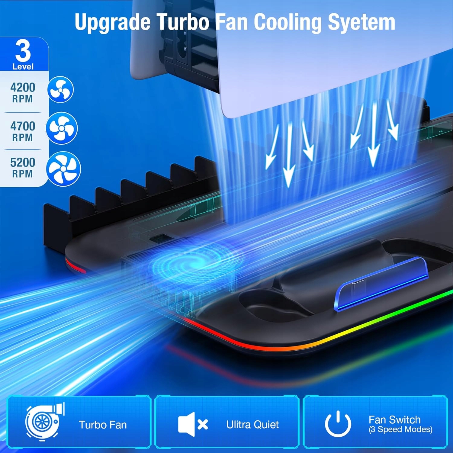ORGANIZATOR RGB STACJA ŁADUJĄCA DO DualSense+WENTYLATOR CHŁODZĄCY PS5/PS5 SLIM 2023