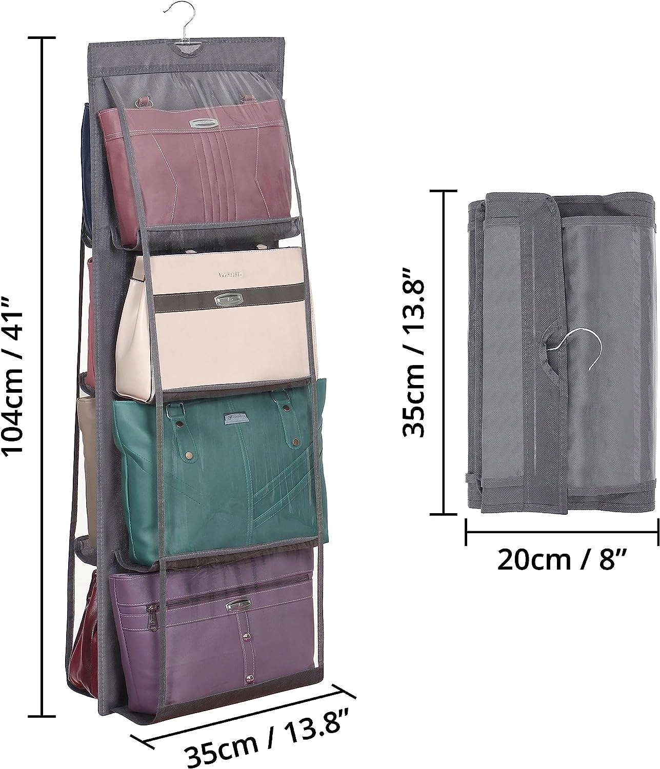Организатор сумочек, висящих в гардероб с 8 отсеками 2 ПК
